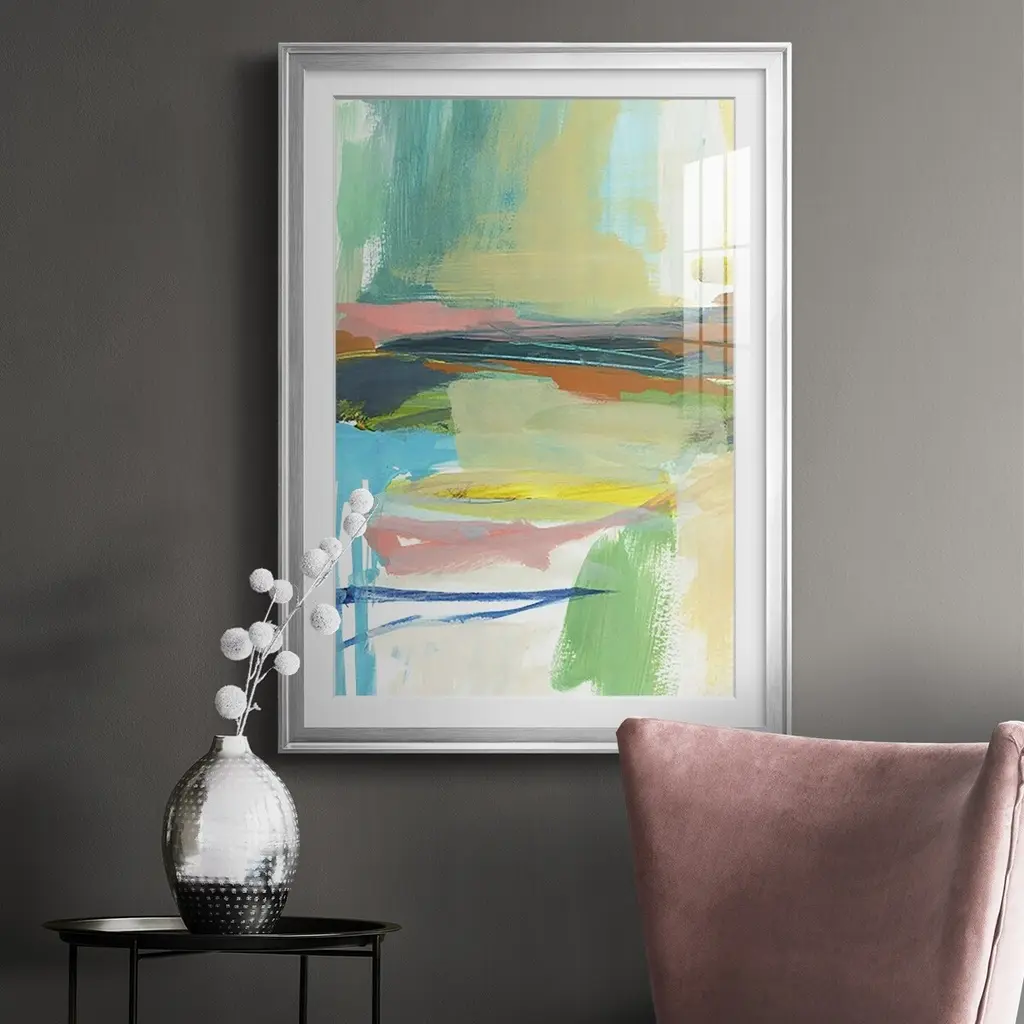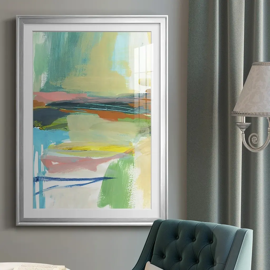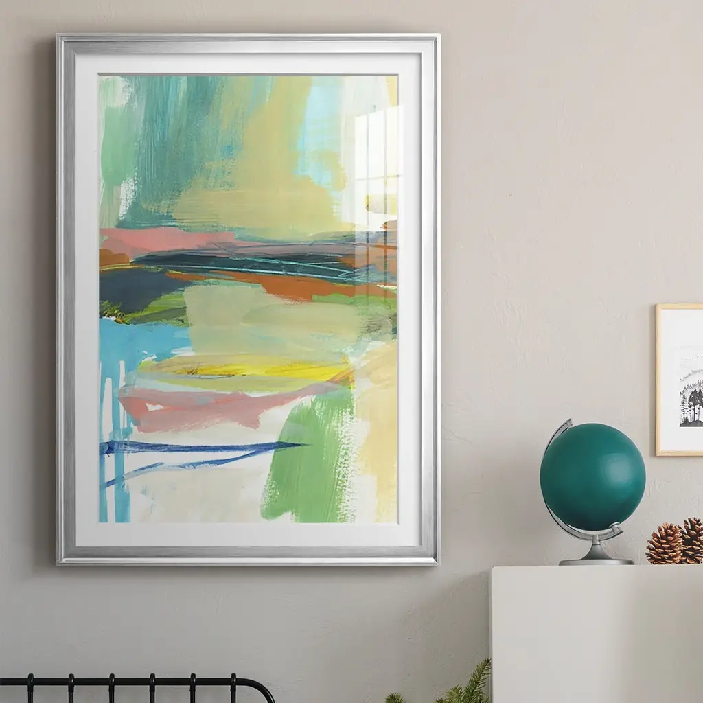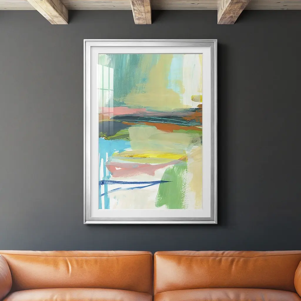 Radiant Horizon III Premium Framed Print - Ready to Hang A Premium Framed Print created to last. Framed in distressed wood and available in an array of sizes and colors Featuring a beveled a solid wood stretcher bar, each piece comes ready to hand 4 SIZES AVAILABLE 30.5''X42.5'' - Overall Size 26.5'X36.5'' - Overall Size 22.5''x30.5'' - Overall Size 18.5''x24.5'' - Overall Size Each piece is made to order. Each piece comes with hanging hardware. Made in the USA Ready to Hang Giclee Paper Print Acrylic Glass Beveled Matt Board