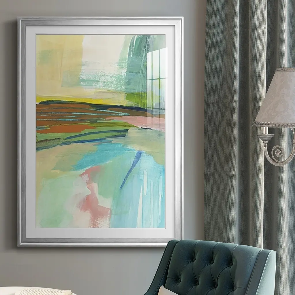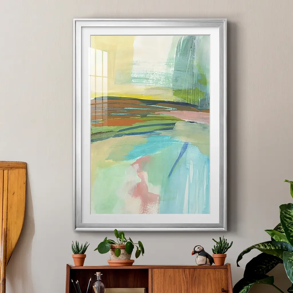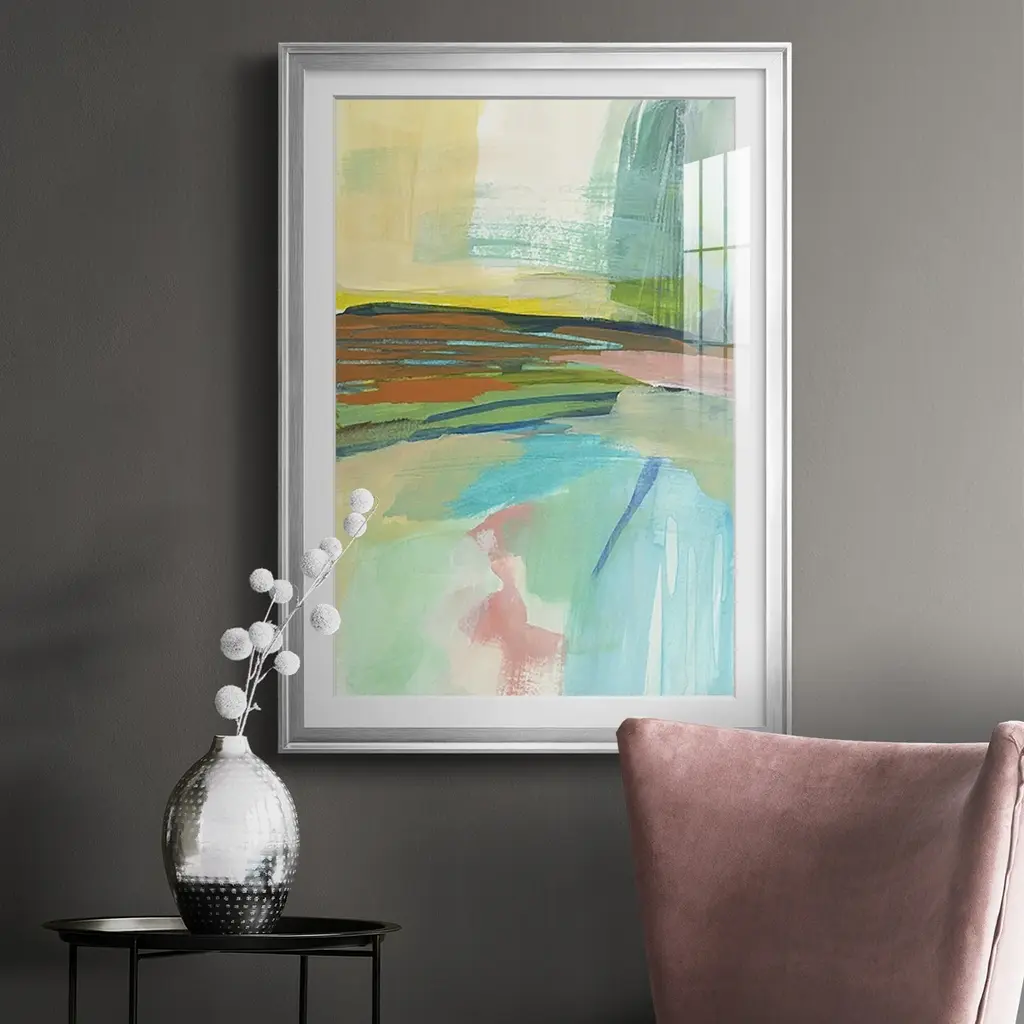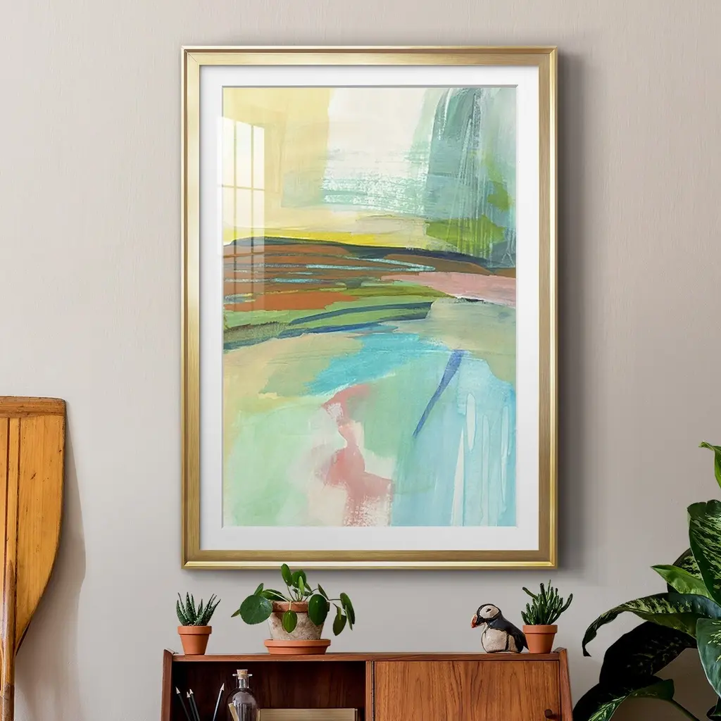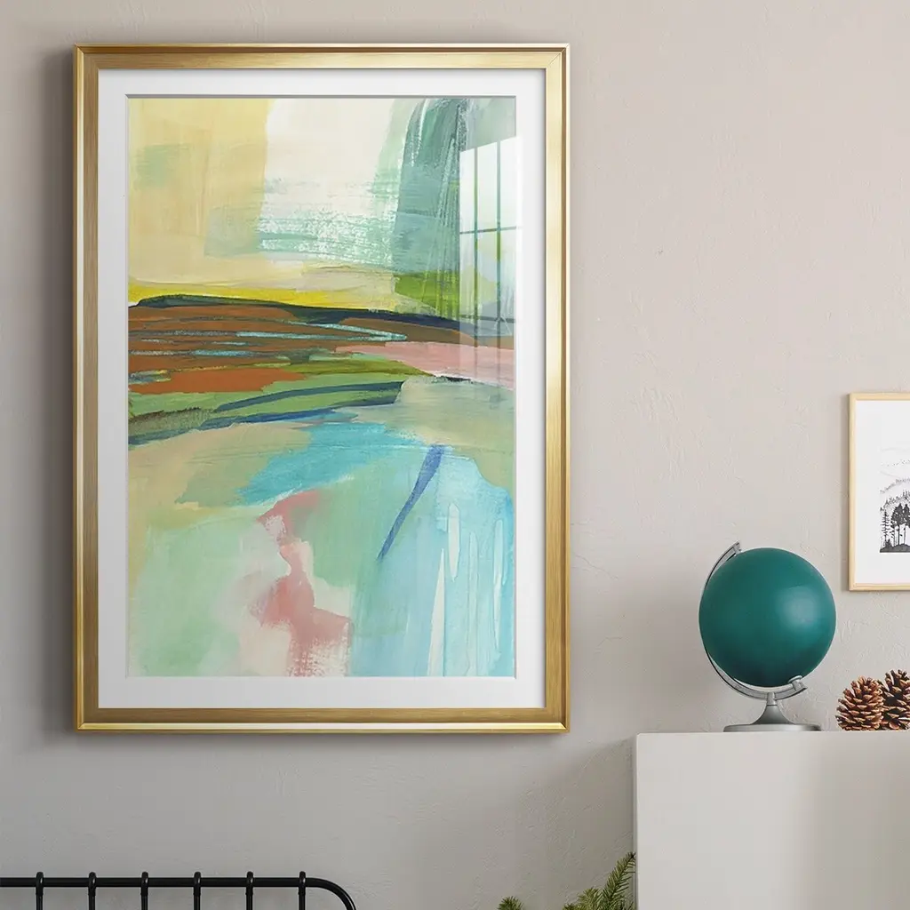 Radiant Horizon IV Premium Framed Print - Ready to Hang A Premium Framed Print created to last. Framed in distressed wood and available in an array of sizes and colors Featuring a beveled a solid wood stretcher bar, each piece comes ready to hand 4 SIZES AVAILABLE 30.5''X42.5'' - Overall Size 26.5'X36.5'' - Overall Size 22.5''x30.5'' - Overall Size 18.5''x24.5'' - Overall Size Each piece is made to order. Each piece comes with hanging hardware. Made in the USA Ready to Hang Giclee Paper Print Acrylic Glass Beveled Matt Board