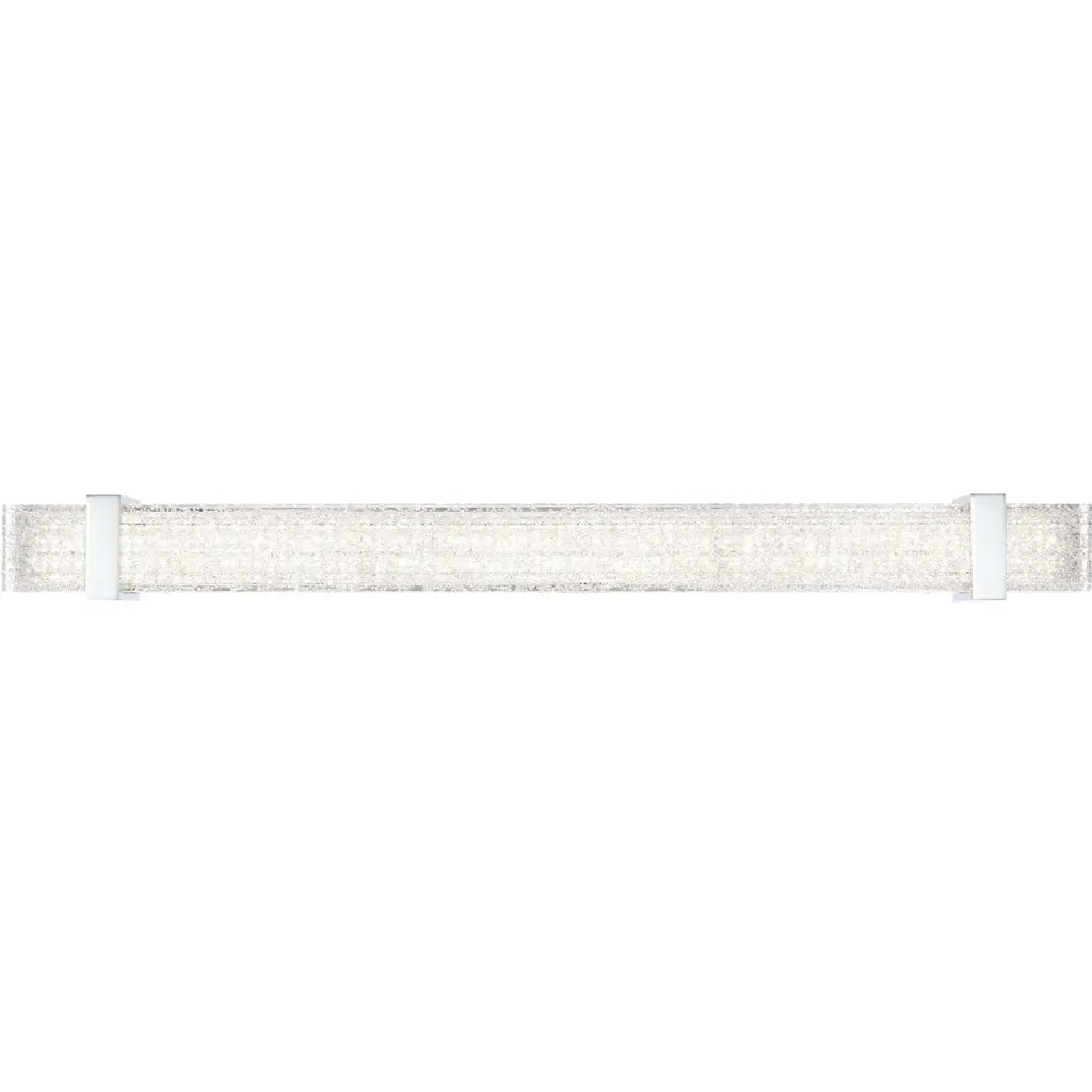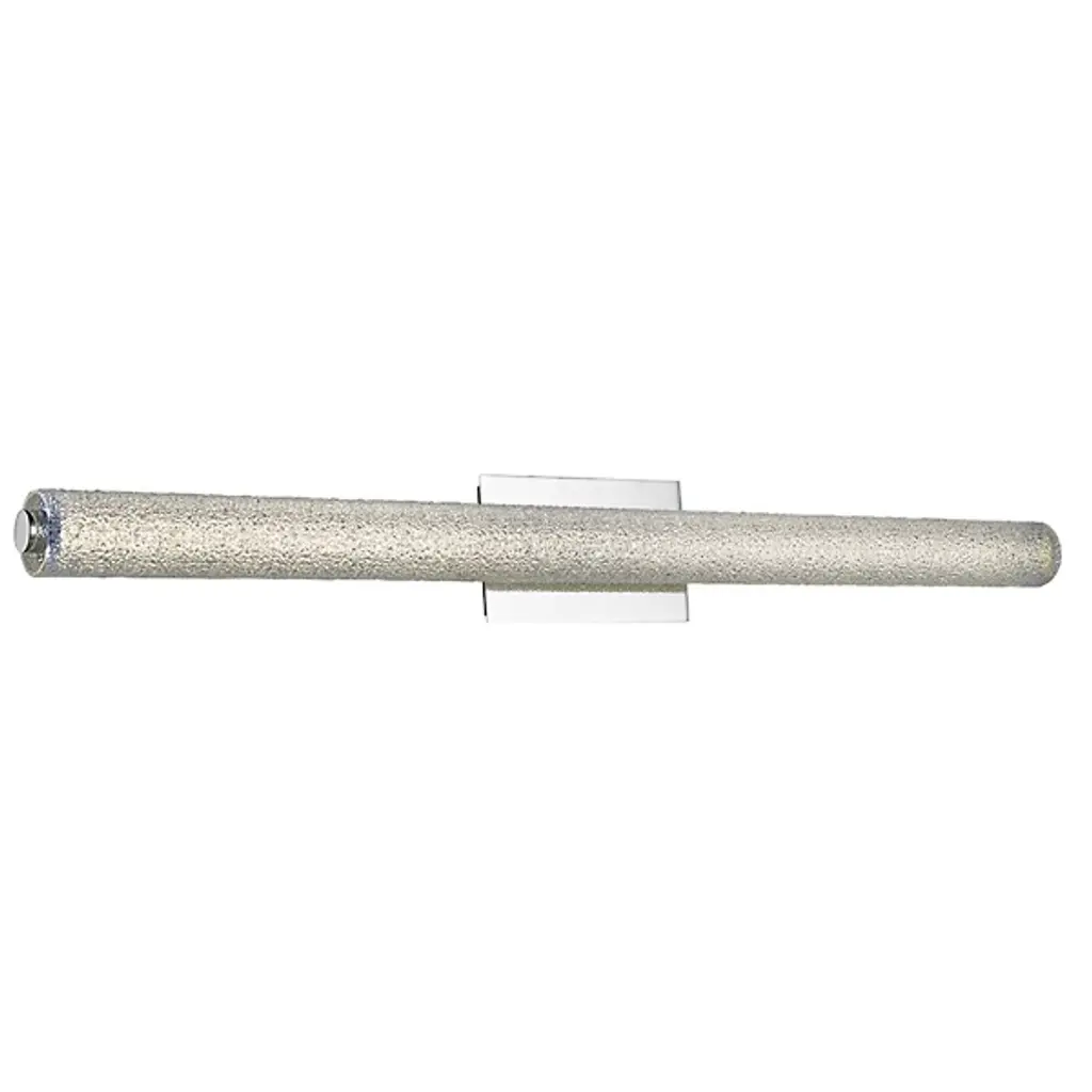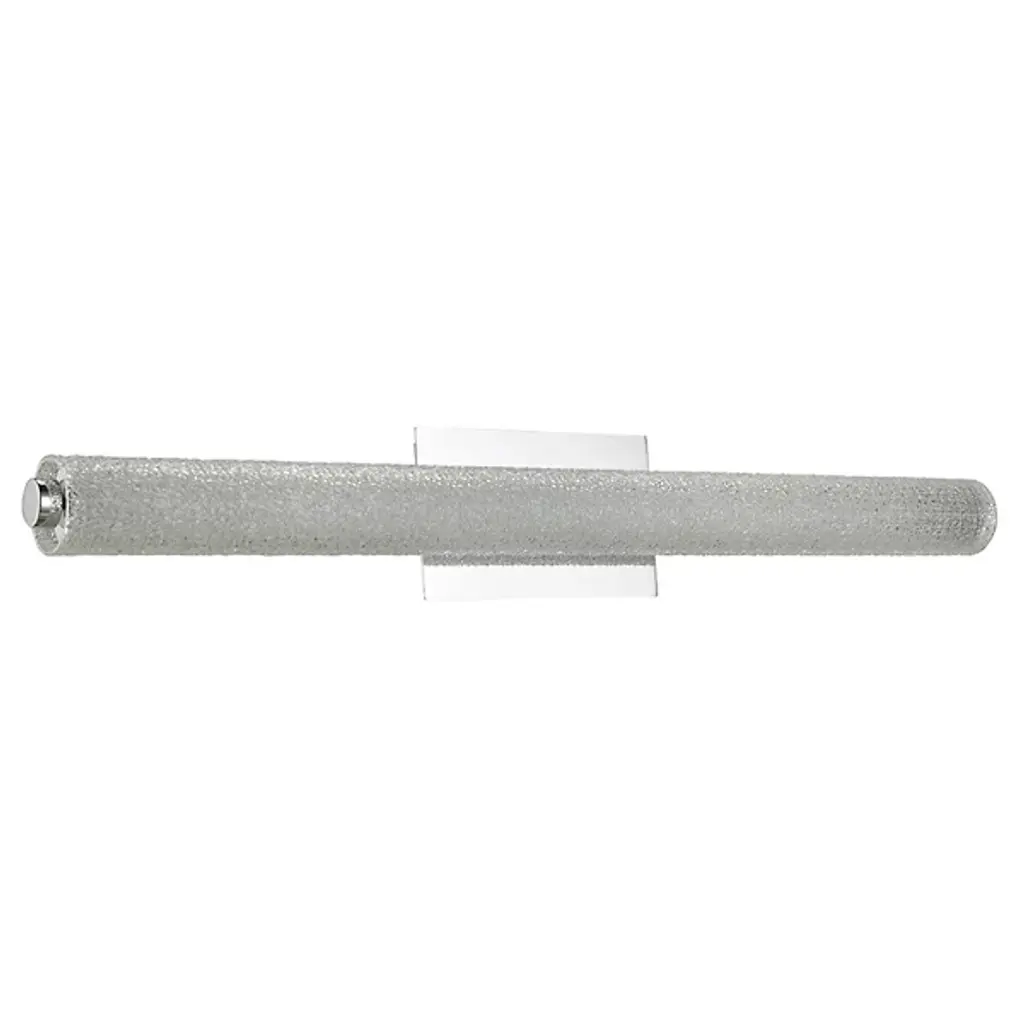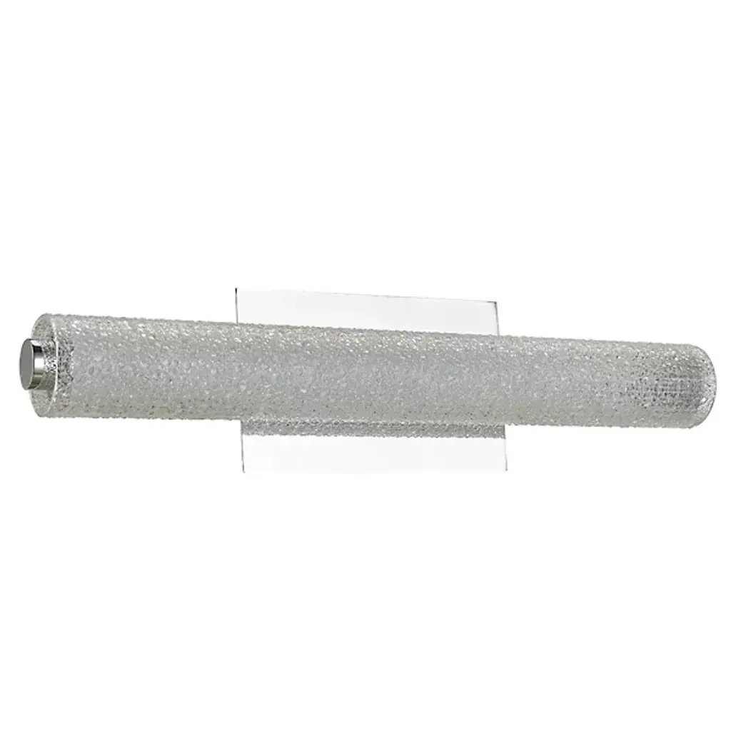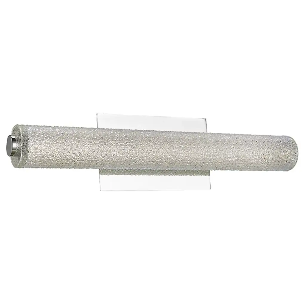 The Radius LED Vanity Light from Abra Lighting brings a touch of sparkling glamor to bathrooms and vanities. Supported by a sleek rectangular backplate, the fixture boasts a single, elongated shade constructed in a hand-blown diamond glass style. The cylindrical shade houses an integrated LED light source that brings the piece to life when illuminated, with each textured facet elegantly glistening with light, making it ideal for spaces that call for a stylish and functional addition.