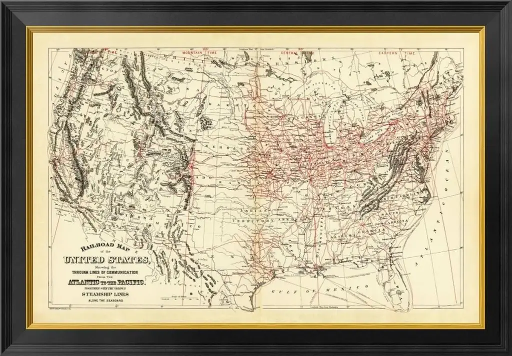 "Railroad Map Of The United States, 1890" By Samuel Augustus Mitchell, 34x24"