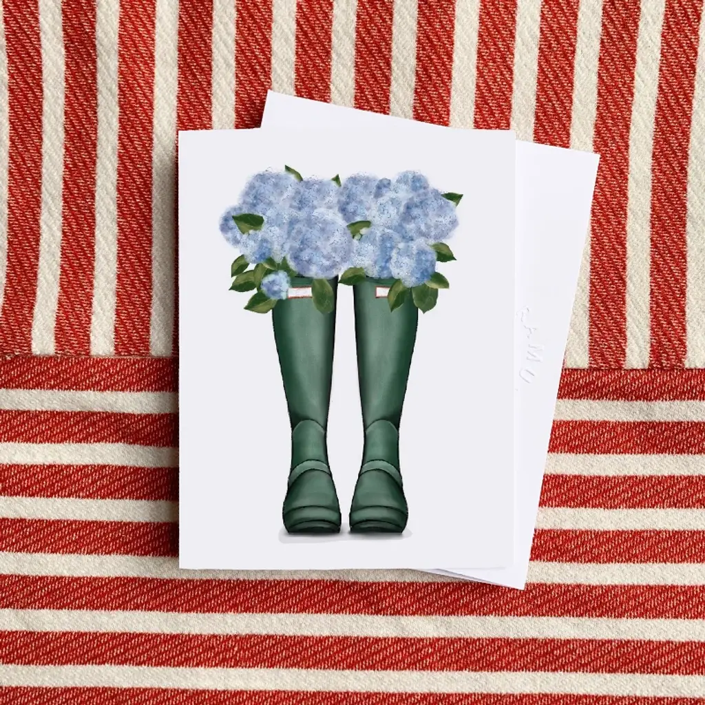 Rain Boot Hydrangeas Greeting Card Pack Set (8 Ct.) By Ramus & Co
