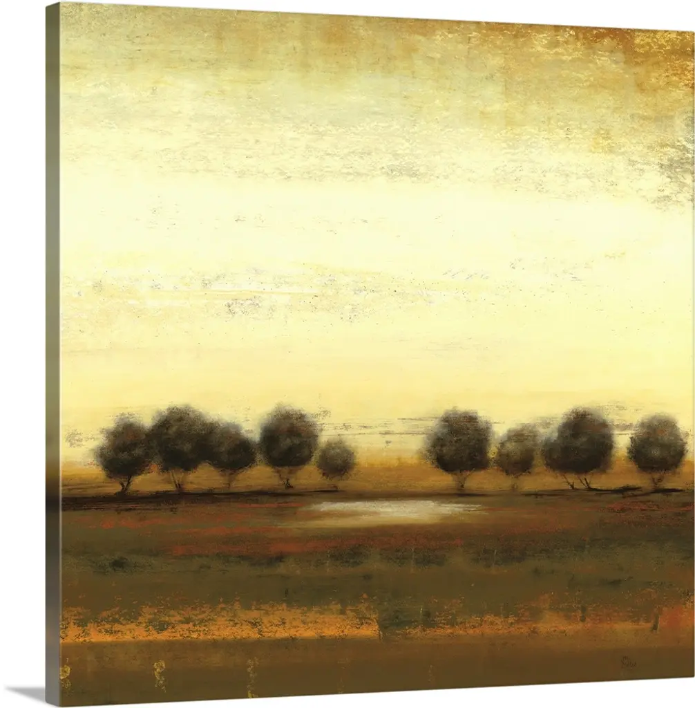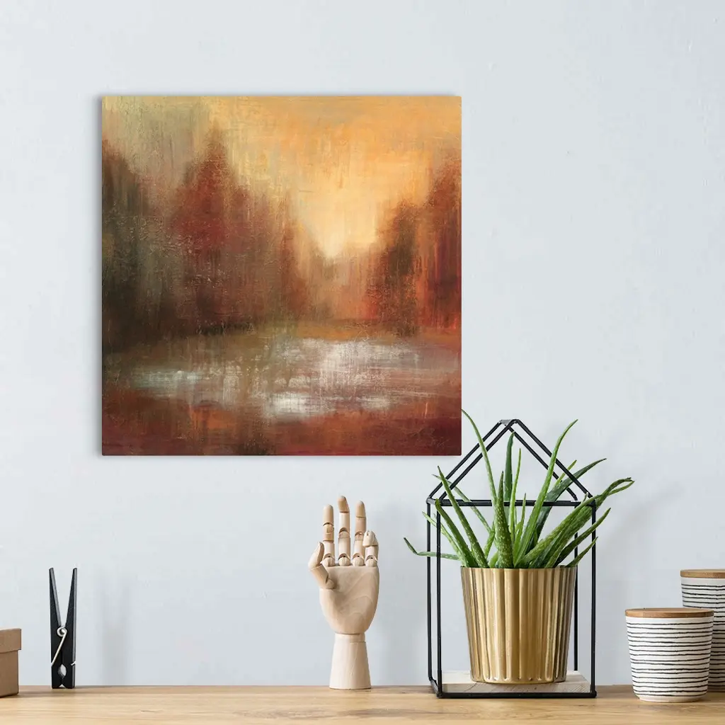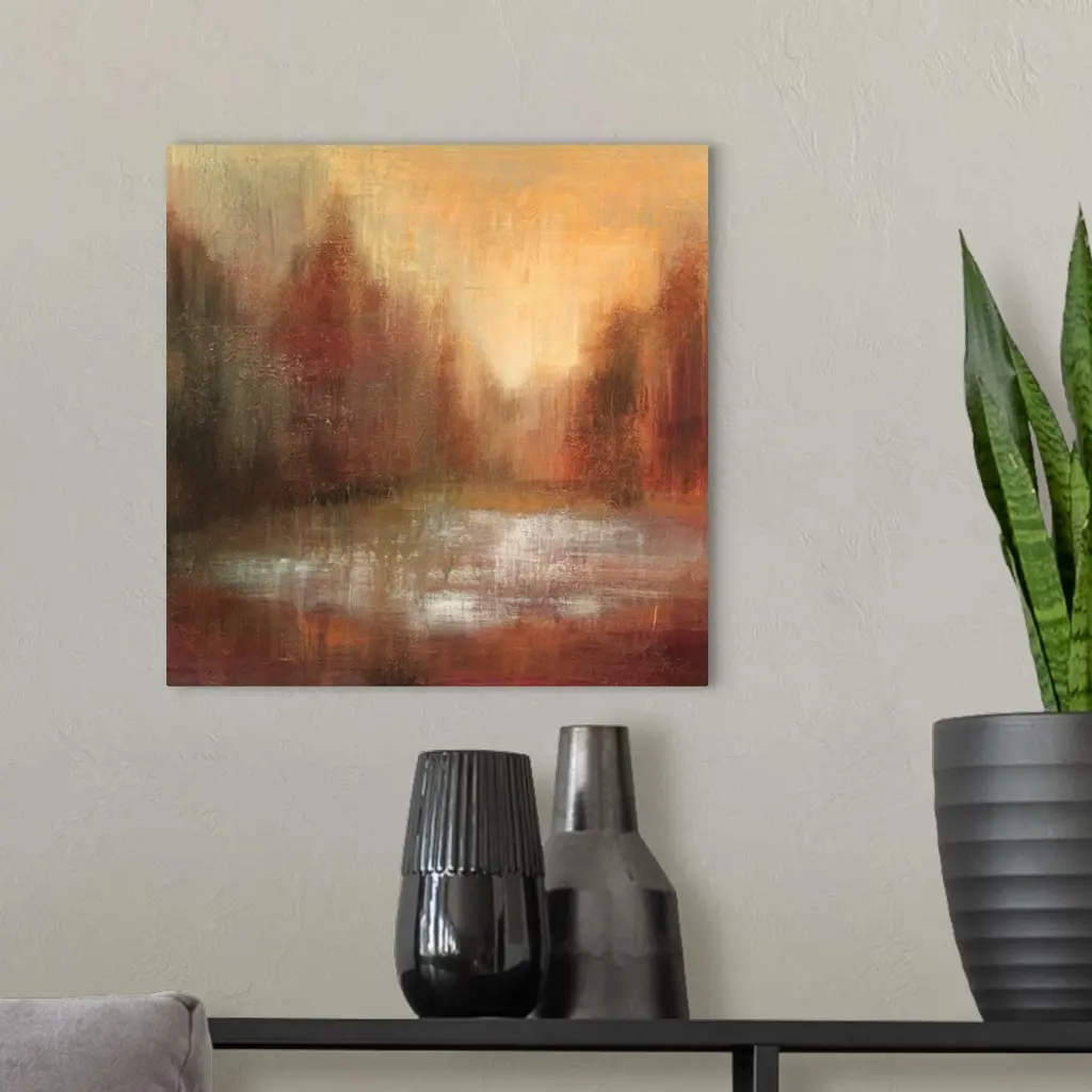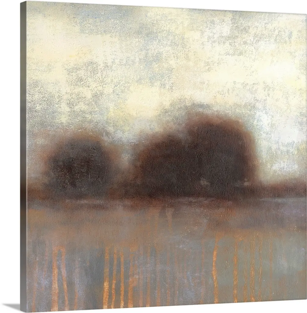 Abstract painting of earth tones almost looking like an idyllic forest scene.