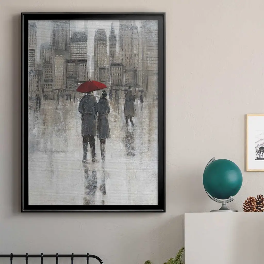 Rain in The City I Premium Framed Print - Ready to Hang A Premium Framed Print created to last. Framed in distressed wood and available in an array of sizes and colors Featuring a beveled a solid wood stretcher bar, each piece comes ready to hand 4 SIZES AVAILABLE 30.5''X42.5'' - Overall Size 26.5'X36.5'' - Overall Size 22.5''x30.5'' - Overall Size 18.5''x24.5'' - Overall Size Each piece is made to order. Each piece comes with hanging hardware. Made in the USA Ready to Hang