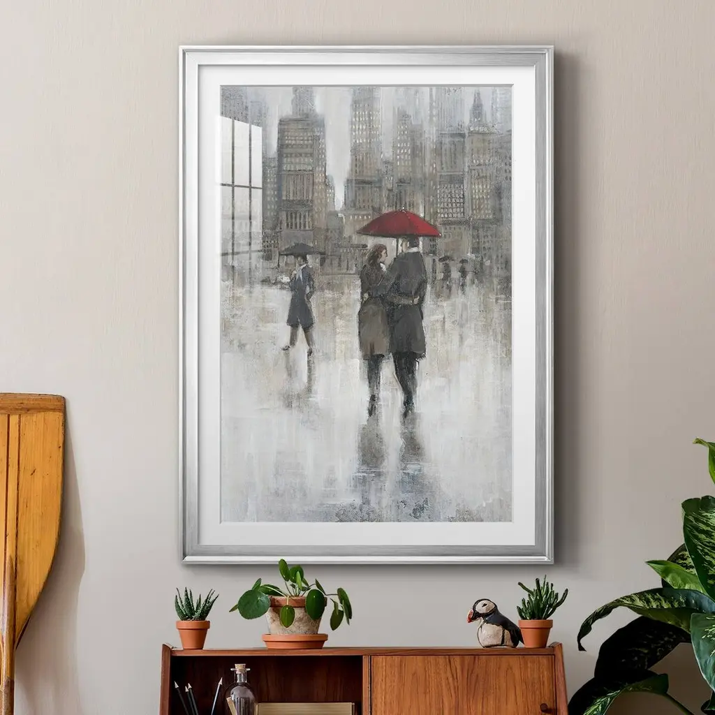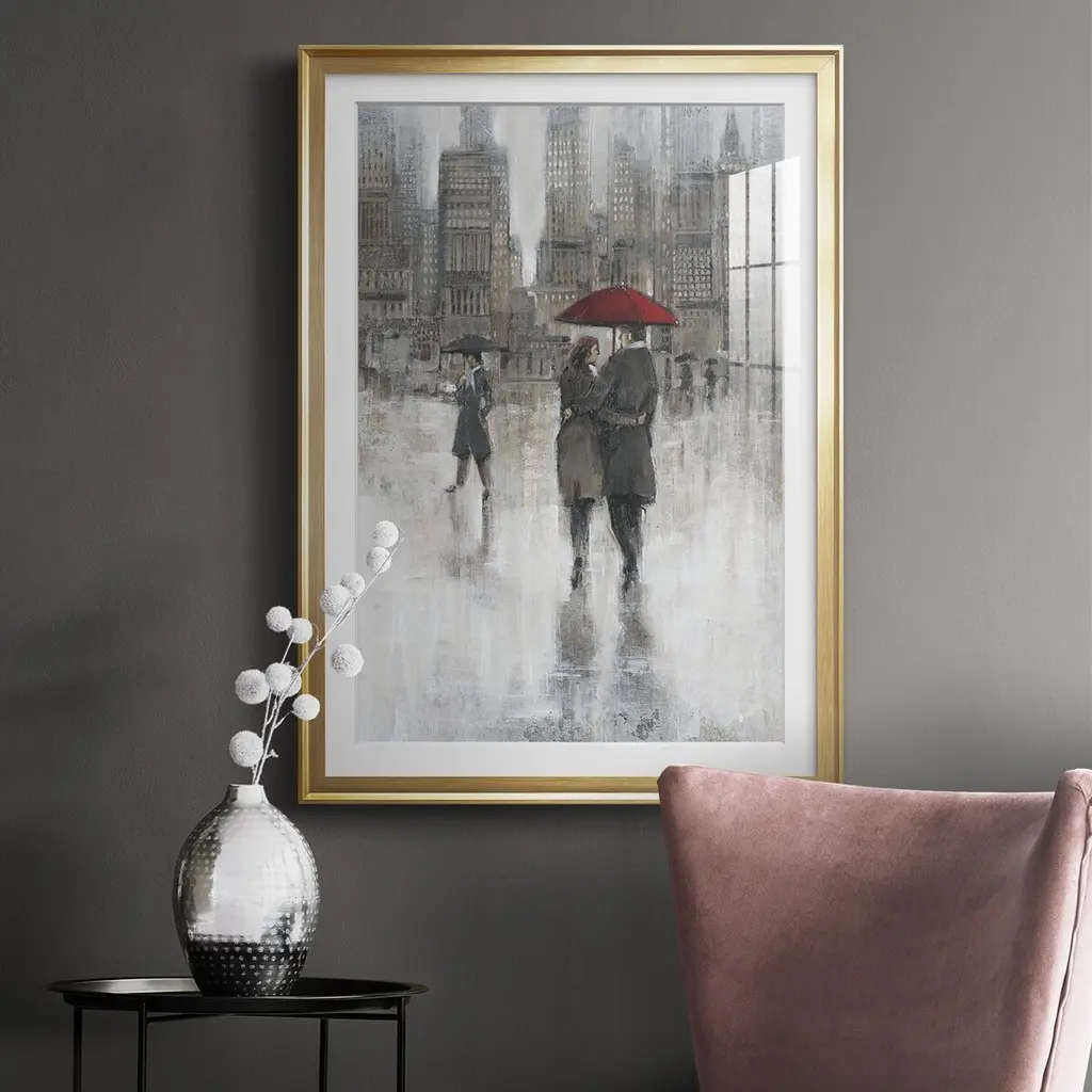 Rain in The City II Premium Framed Print - Ready to Hang A Premium Framed Print created to last. Framed in distressed wood and available in an array of sizes and colors Featuring a beveled a solid wood stretcher bar, each piece comes ready to hand 4 SIZES AVAILABLE 30.5''X42.5'' - Overall Size 26.5'X36.5'' - Overall Size 22.5''x30.5'' - Overall Size 18.5''x24.5'' - Overall Size Each piece is made to order. Each piece comes with hanging hardware. Made in the USA Ready to Hang Giclee Paper Print Acrylic Glass Beveled Matt Board