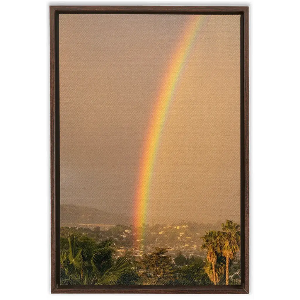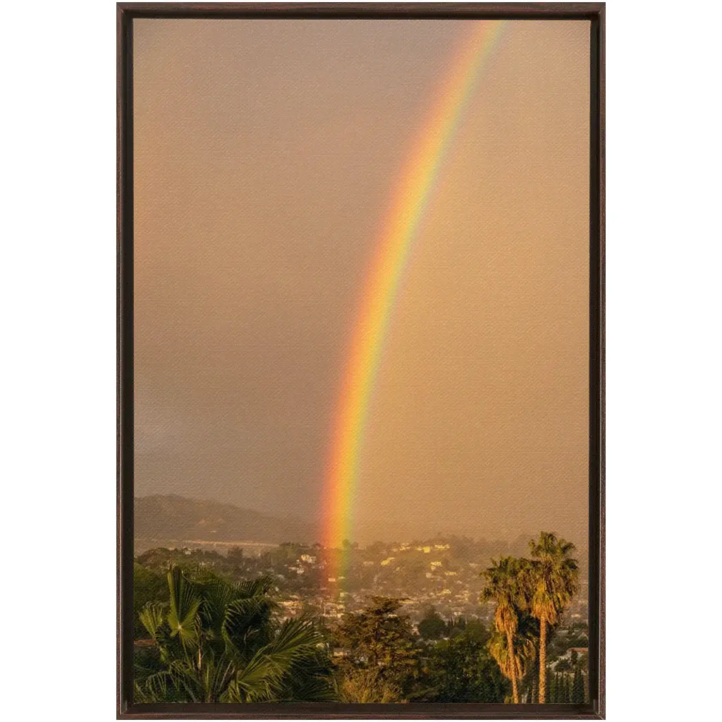 over the rainbow...Ready to hang canvas print media is acid free with a medium texture and scratch-resistant finish. Solid wood frame, fully finished backing, with corner bumpers for level hanging and to protect your wall. Easily wipes clean with a damp cloth.Size reflects print size, frame adds an additional 2" to length and width