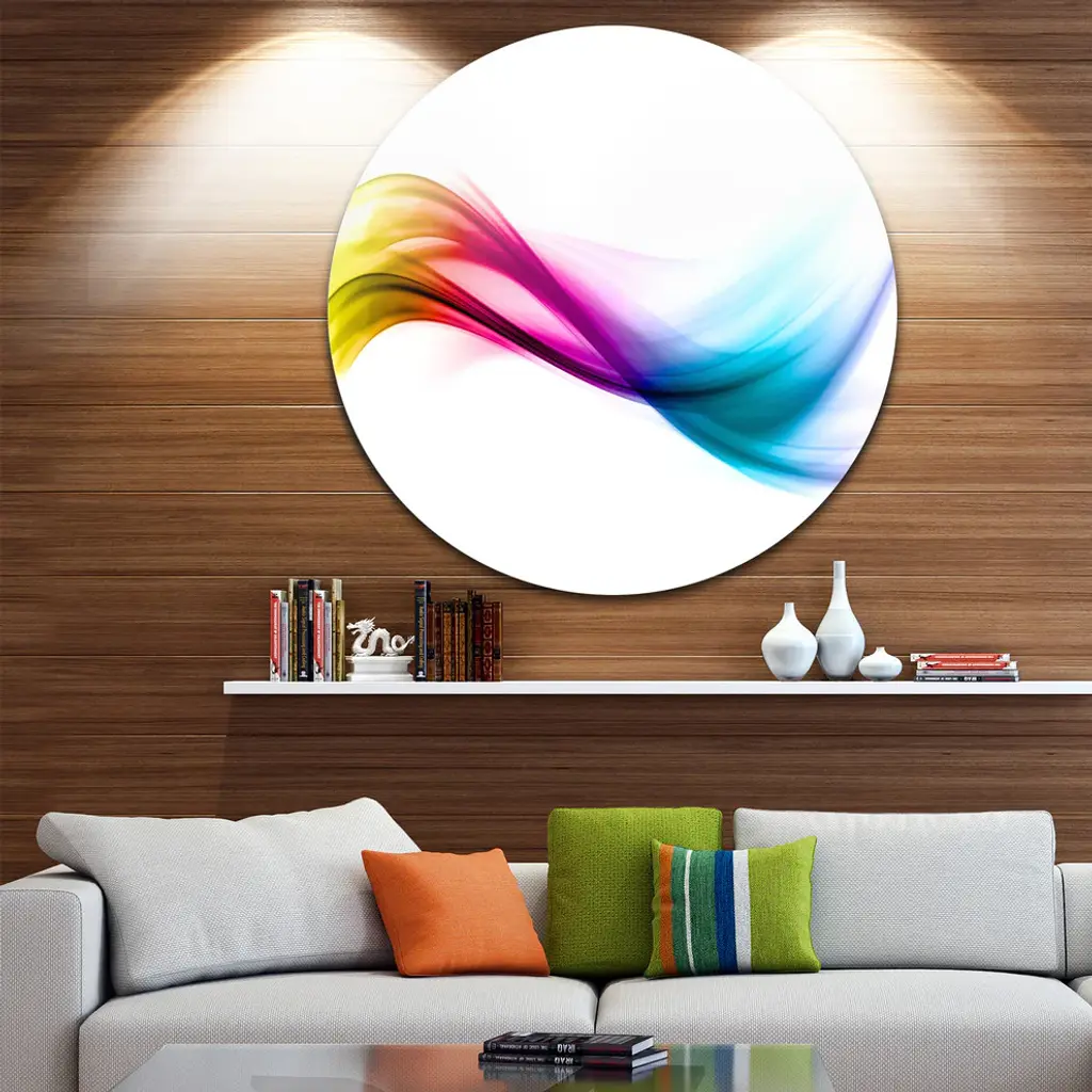 Bring Contemporary Abstraction to your home with this large Circle Metal wall art. This Rainbow Abstract Pattern Metal Artwork makes it the focal point of any room or office. - White Gloss Coating ensures colors are extra vibrant with light reflection.- Aluminum grade Sheet Metal with 1 inch mounting frame on the back giving the illusion that the artwork is floating on the wall..- Mounting Brackets are included along with instructions.- High Quality Digital images are created directly into a glossy aluminum panel producing a stunning and captivating print into the glossy finish of the metal.- Water, Fire and Scratch resistant HD Aluminum panels.- Looks better than any photo paper and guaranteed to last at least 20 years- Easy to clean with a microfiber cloth. Colors are far superior to regular Canvas Art. - Easy to Hang