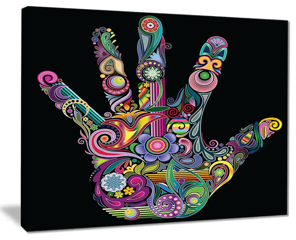 "Rainbow Hand With Multi Colors" Abstract Digital Art Canvas Print