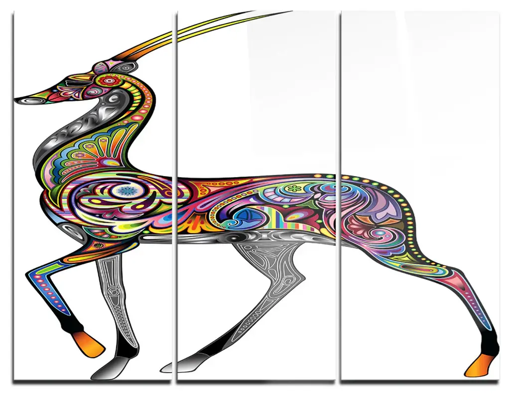 "Rainbow Patterned Horse" Digital Metal Wall Art, 3 Panels, 36"x28"