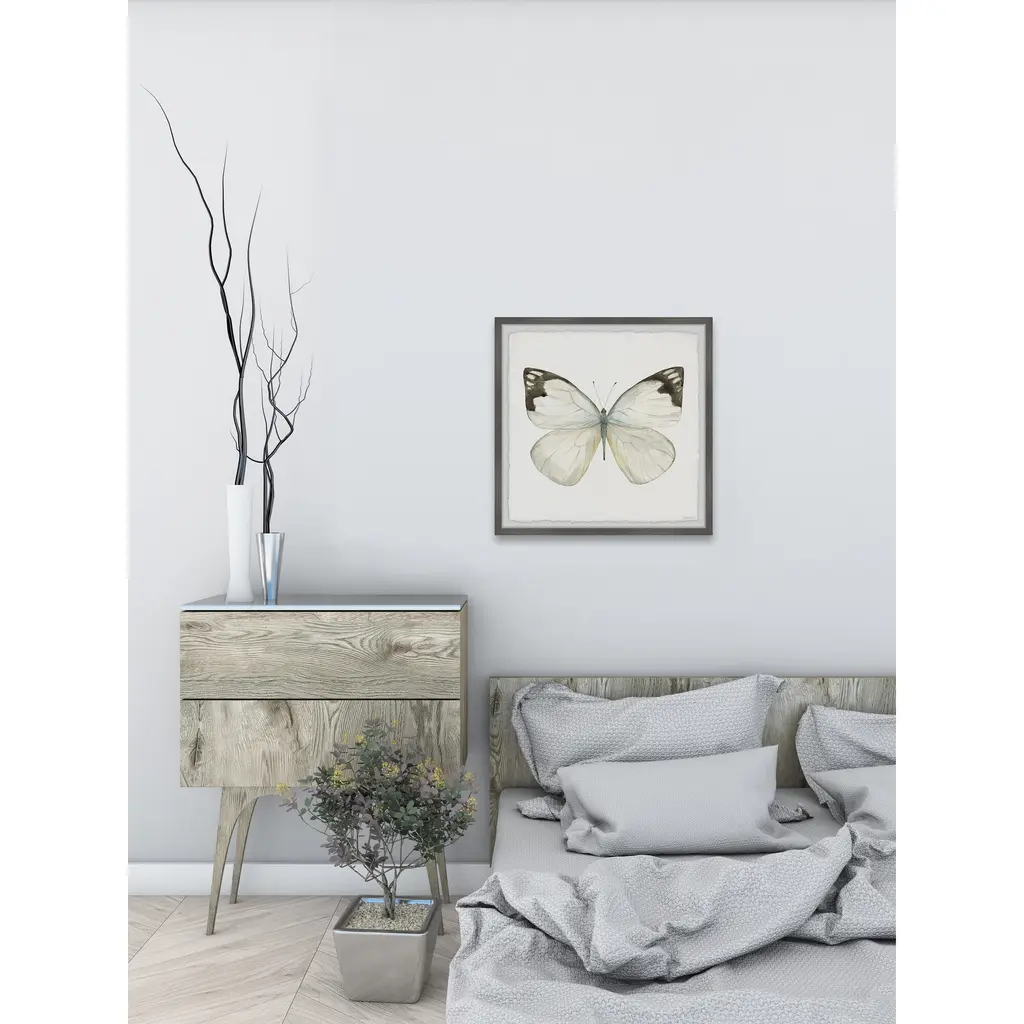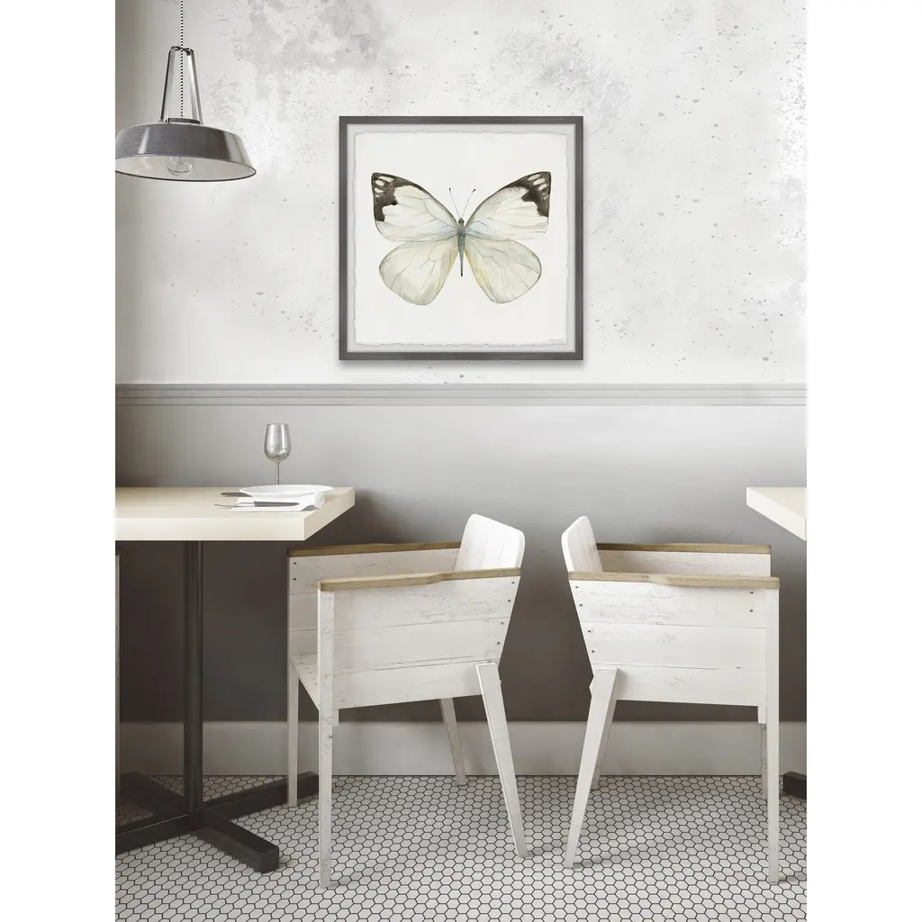 Perfect for modern interiors, this print features a white butterfly on a complementary white background. Proudly printed in the USA, this piece is printed on high quality archive paper and professionally hand-framed. With wall-mounting hooks included, this artful accent is ready to hang up as soon as it reaches your front door. • Top quality Giclee print on high resolution Archive Paper • Hand cut deckled edges • High quality durable non-warping frame • Finished under shatter resistant plexiglass • Arrives ready to hang • Includes a certificate of authenticity • Printed in the USA