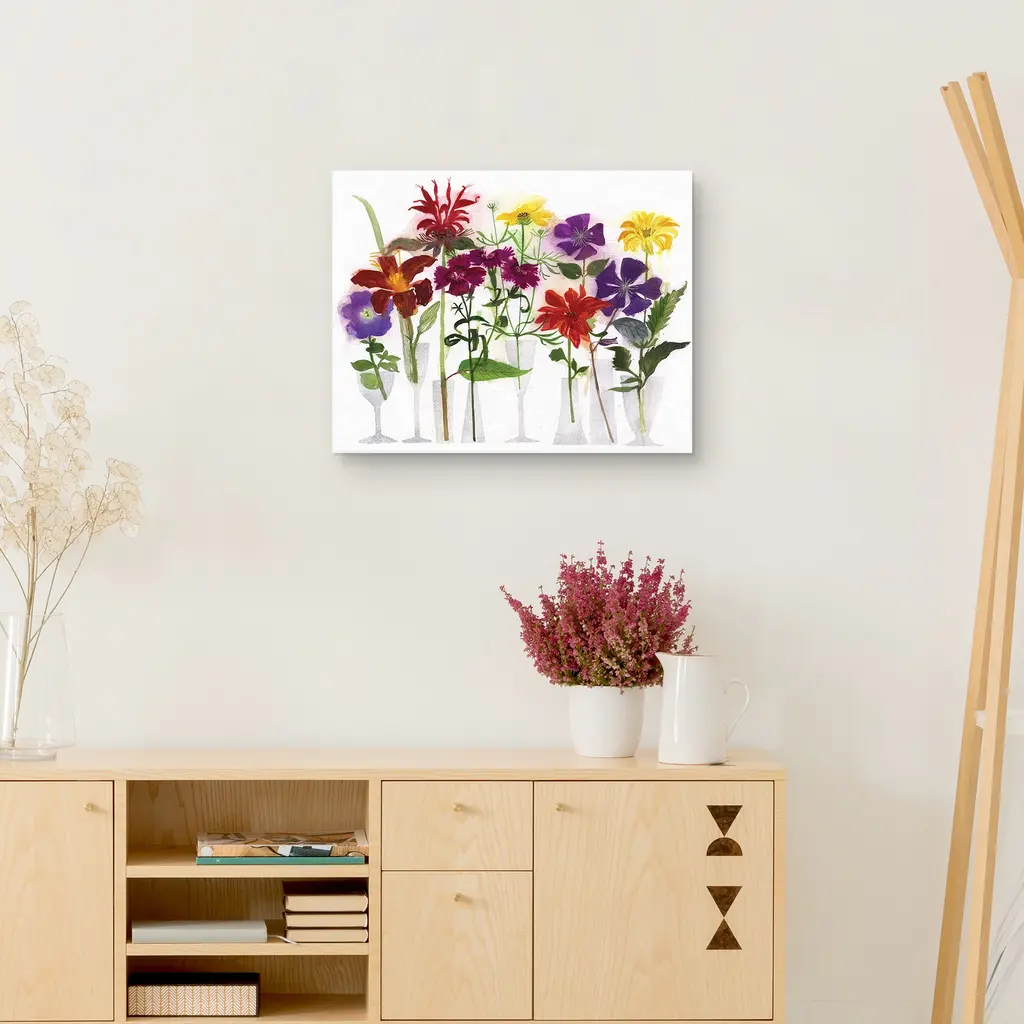 Rainy Day Flowers by Maret Hensick Canvas Art Print is produced with printing that covers the entirety of the canvas for a sleek and stylish museum-quality look. Our framed prints are made by expert craftsmen who strive to make each canvas the masterpiece