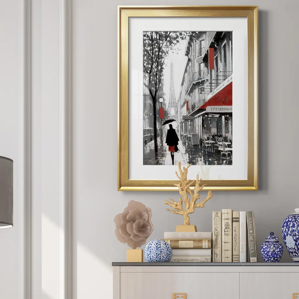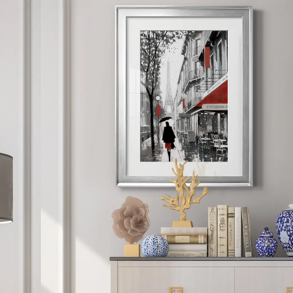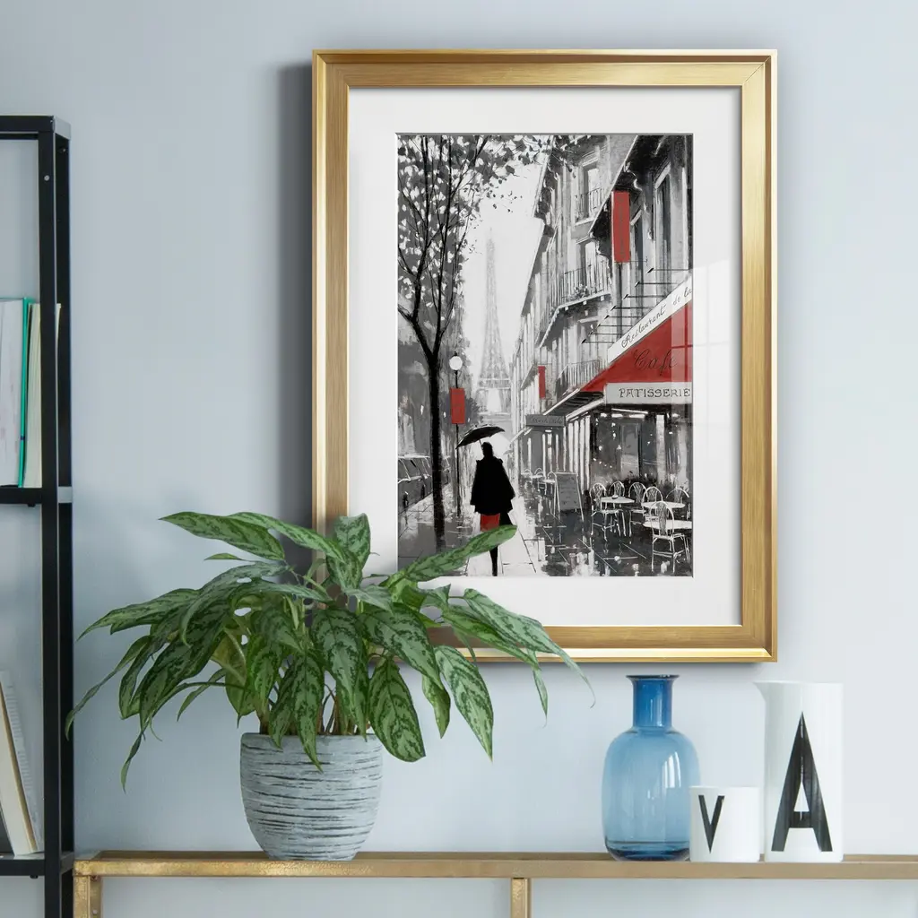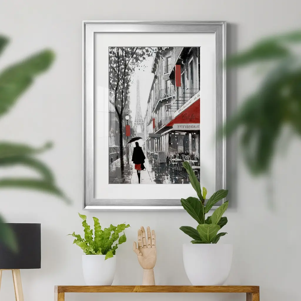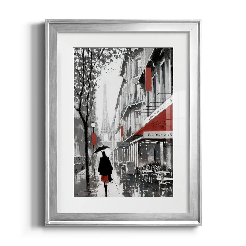 Rainy Paris I Premium Framed Print - Ready to Hang A Premium Framed Print created to last. Framed in distressed wood and available in an array of sizes and colors Featuring a beveled a solid wood stretcher bar, each piece comes ready to hand 4 SIZES AVAILABLE 30.5''X42.5'' - Overall Size 26.5'X36.5'' - Overall Size 22''x30'' - Overall Size 18''x24'' - Overall Size Each piece is made to order. Each piece comes with hanging hardware. Made in the USA Ready to Hang Giclee Paper Print Acrylic Glass Beveled Matt Board