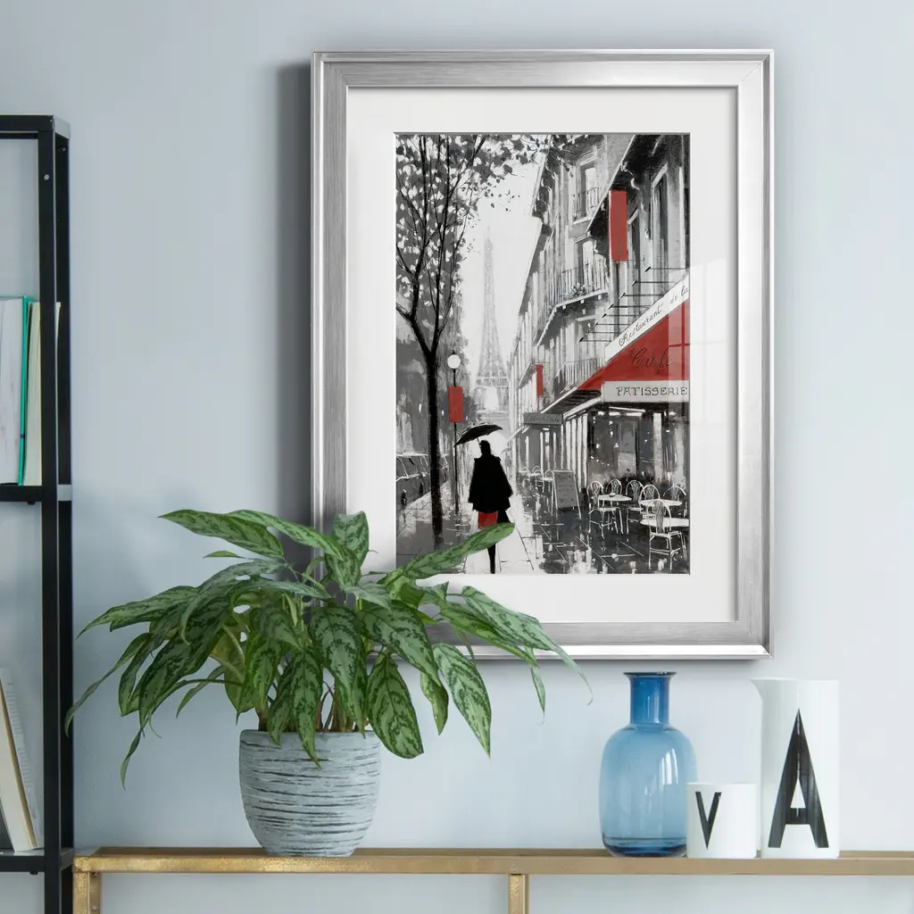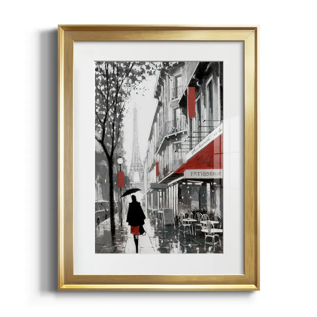 Rainy Paris I Premium Framed Print - Ready to Hang A Premium Framed Print created to last. Framed in distressed wood and available in an array of sizes and colors Featuring a beveled a solid wood stretcher bar, each piece comes ready to hand 4 SIZES AVAILABLE 30.5''X42.5'' - Overall Size 26.5'X36.5'' - Overall Size 22''x30'' - Overall Size 18''x24'' - Overall Size Each piece is made to order. Each piece comes with hanging hardware. Made in the USA Ready to Hang Giclee Paper Print Acrylic Glass Beveled Matt Board