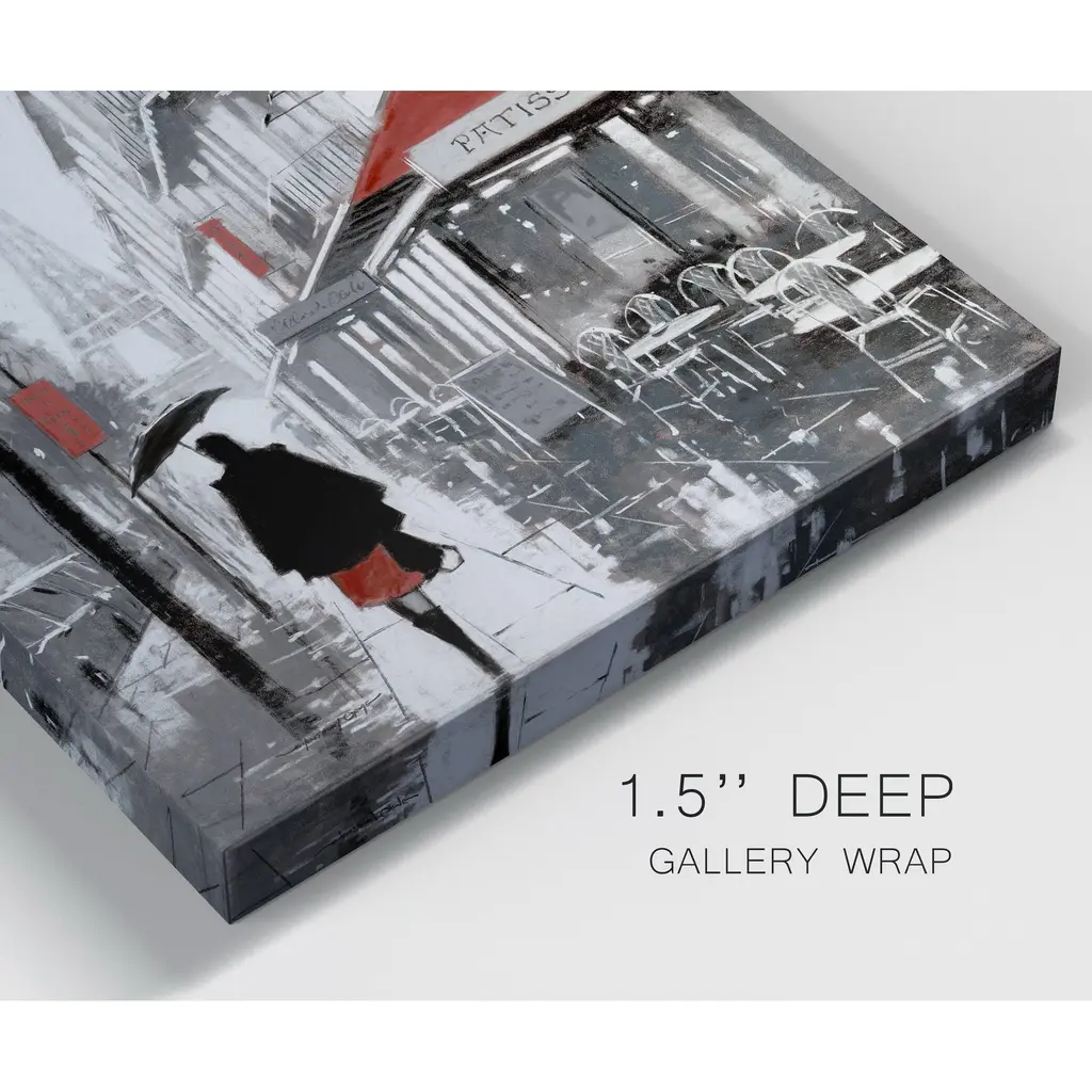 Rainy Paris I-Premium Gallery Wrapped Canvas - Ready to Hang A premium hand stretched gallery wrapped canvas print created to last. Featuring a beveled a solid wood stretcher bar, each piece comes ready to hand 5 SIZES AVAILABLE 8''X12'' - Overall Size 12''X18'' - Overall Size 18''x27'' - Overall Size 24''x36'' - Overall Size 32''x48'' - Overall Size Each piece is made to order. Built to Last Each piece comes ready to hang Solid wood stretcher Fade and Water resistant Made domestically
