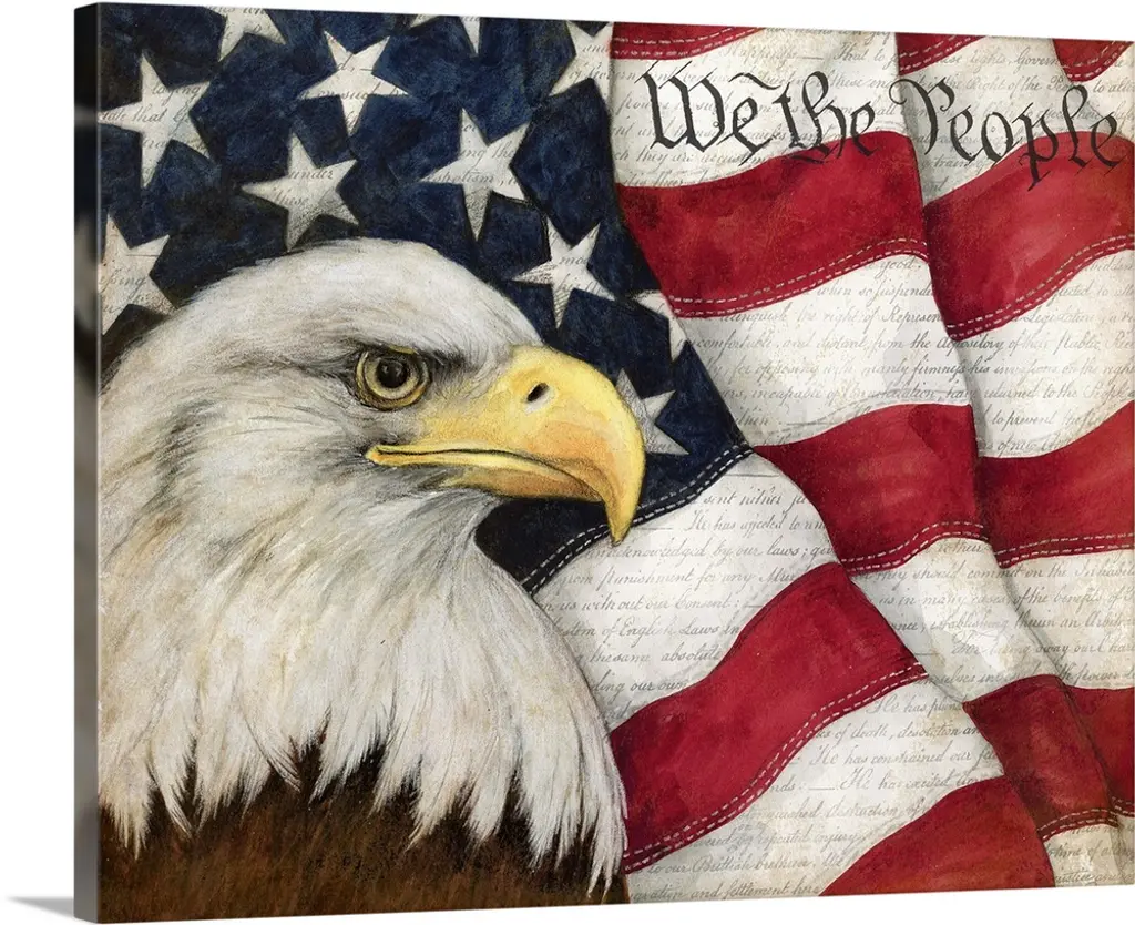 "Raising The Flag On Iwo Jima Us Constitution" By Icanvas, 18x18x1.5"