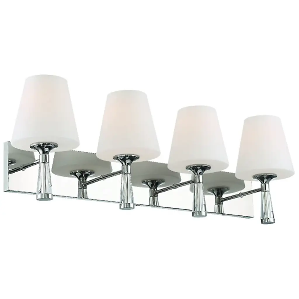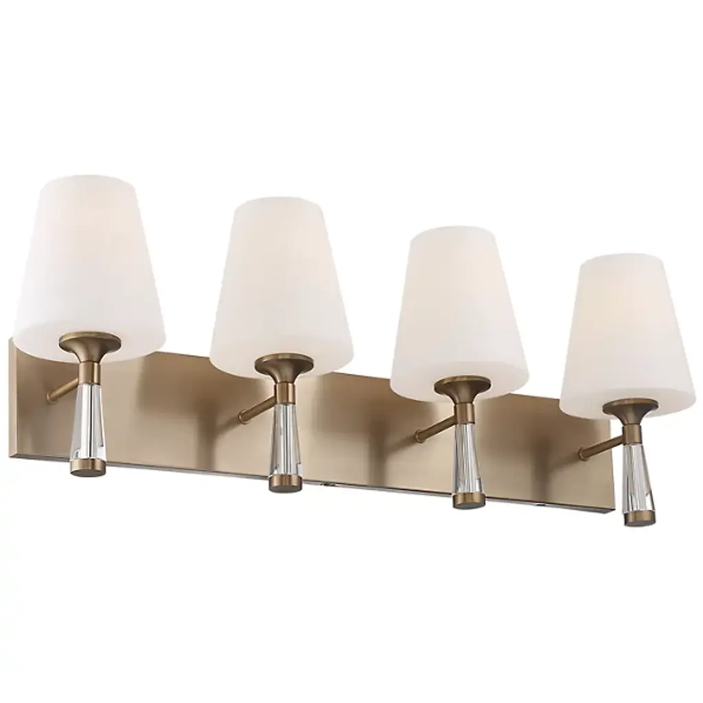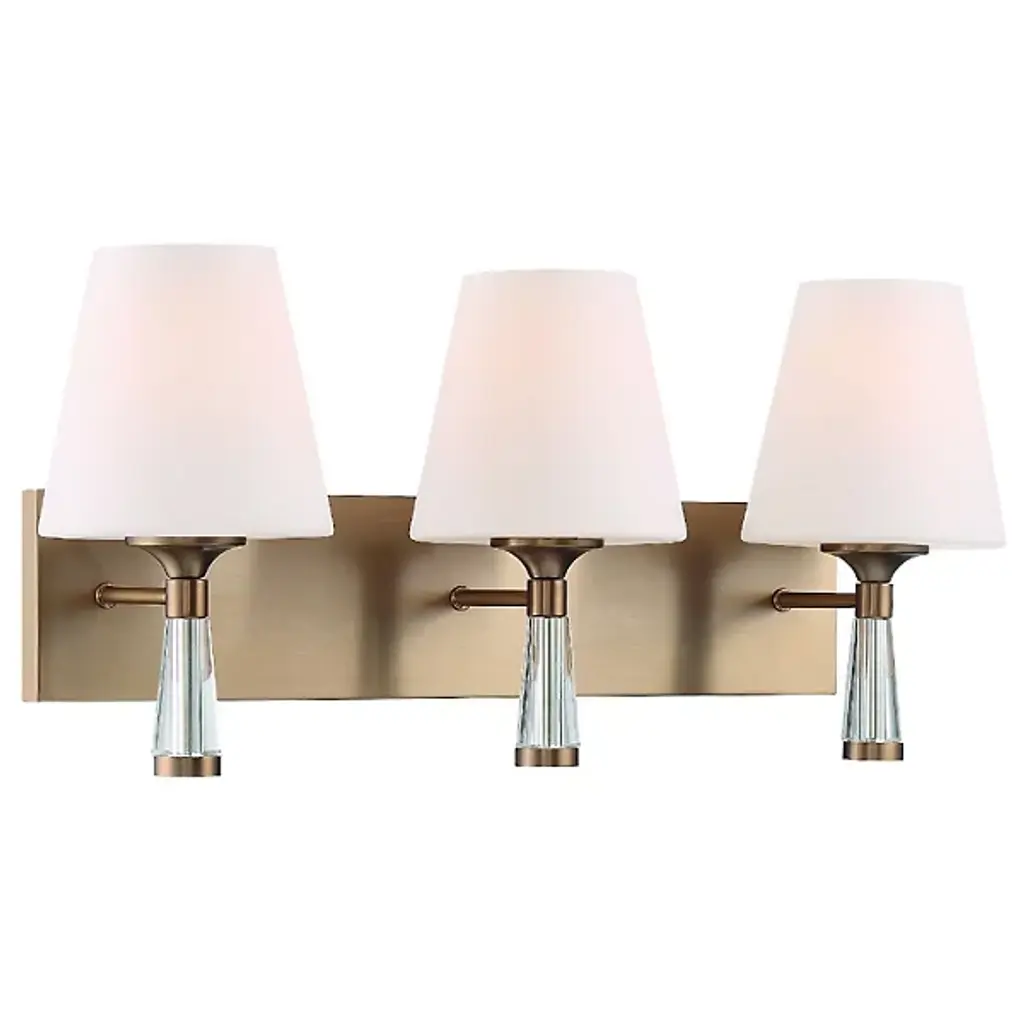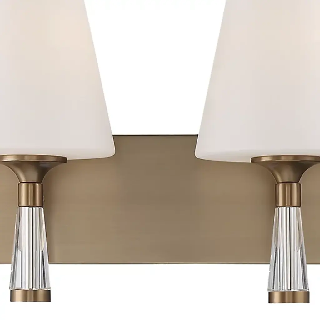 Handsome, refined, and sophisticated. Let your bathroom's lighting device not only brightens up the space but communicate an elegant aesthetic with the Ramsey Vanity Light from Crystorama. The piece slots right over your ceiling with a low-ley rectangular backplate. The flat surface of the backplate amplifies the brilliant optics of the crafted glass stem in front. Ornate metal details cap off the glass segment with a traditional character. Eye-catching in its fully enclosed form, an opaque glass shade conceals the bulbs inside for a glare-free experience. When turned on, light diffuses through the glass, producing an even glow over your mirror.