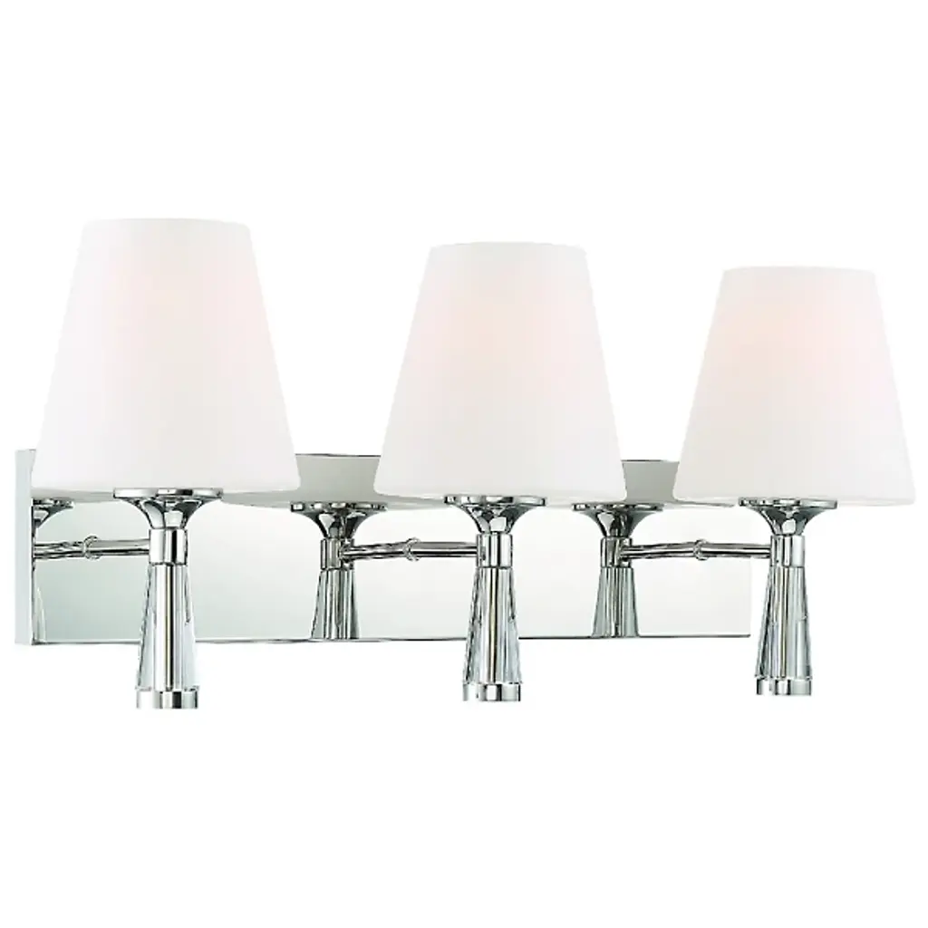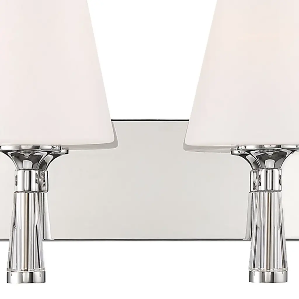 Handsome, refined, and sophisticated. Let your bathroom's lighting device not only brightens up the space but communicate an elegant aesthetic with the Ramsey Vanity Light from Crystorama. The piece slots right over your ceiling with a low-ley rectangular backplate. The flat surface of the backplate amplifies the brilliant optics of the crafted glass stem in front. Ornate metal details cap off the glass segment with a traditional character. Eye-catching in its fully enclosed form, an opaque glass shade conceals the bulbs inside for a glare-free experience. When turned on, light diffuses through the glass, producing an even glow over your mirror.