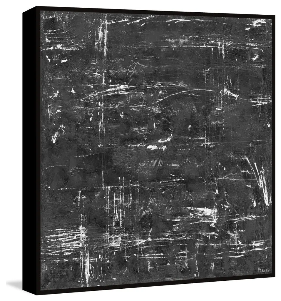This museum-quality acrylic painting print features a black abstract design with hints of white paint all over. Proudly printed in the USA, this piece is printed on canvas before it''s stretched, and framed and mounted in a non-warping floater frame thereafter. With wall-mounting hooks included, this artful accent is ready to hang up as soon as it reaches your front door.Canadian artist, Parvez Taj uses water paints, photographs, software, and UV cured inks to create his wall art. His artwork connects the out-of-reach luxury art world with the modern, fashion-conscious home decorator by delivering high quality artwork that is both affordable and hip.Durable art print on high quality canvas by Parvez TajProfessionally hand stretchedFramed and mounted in non-warping floater frameArrives ready to hangIncludes a certificate of authenticityArtist signature on the front