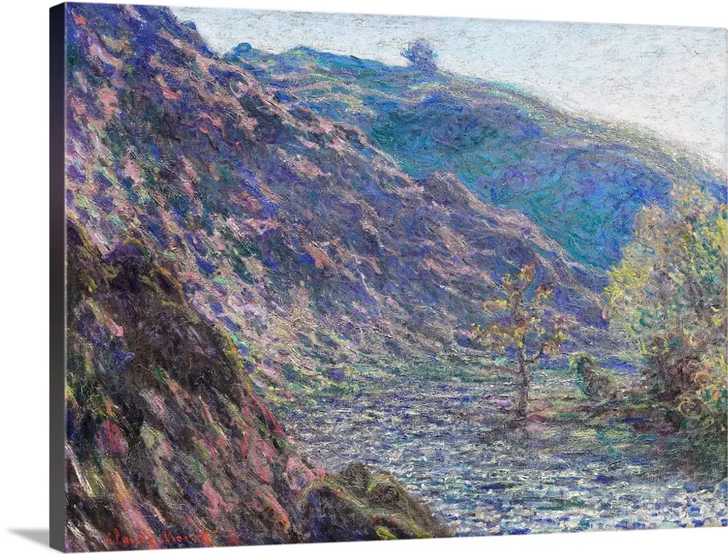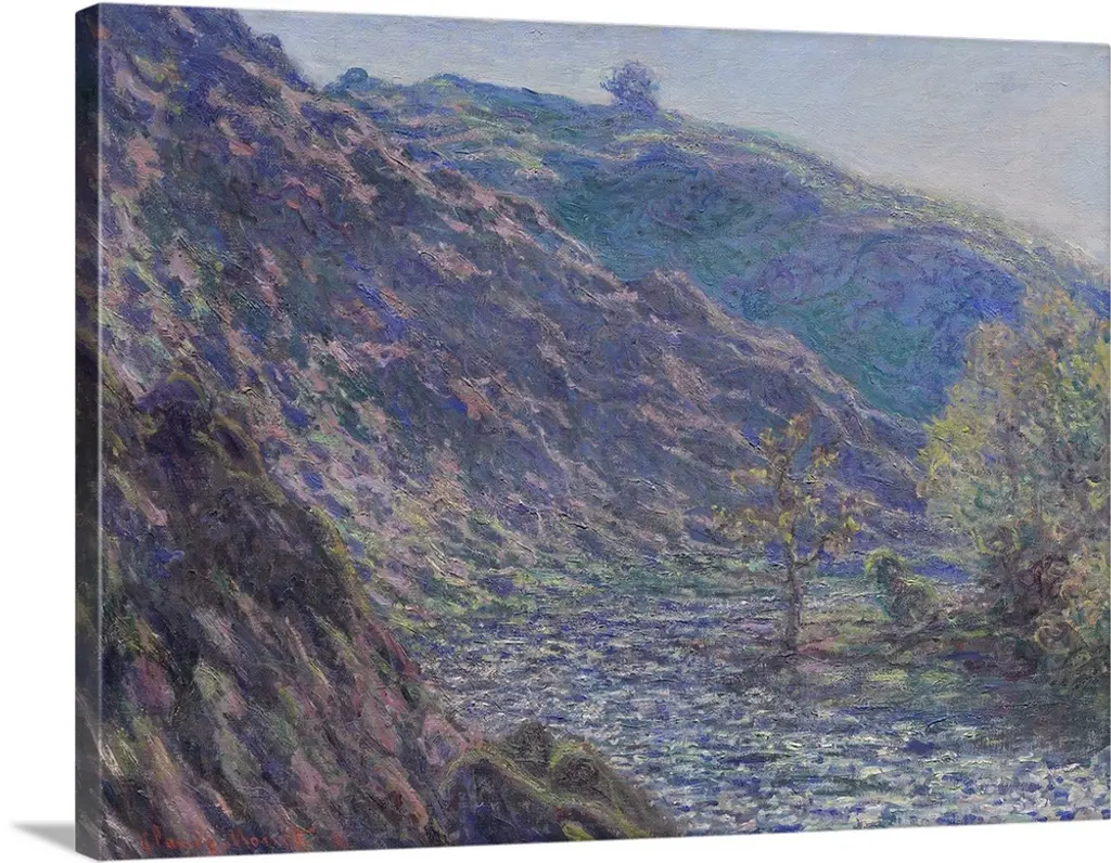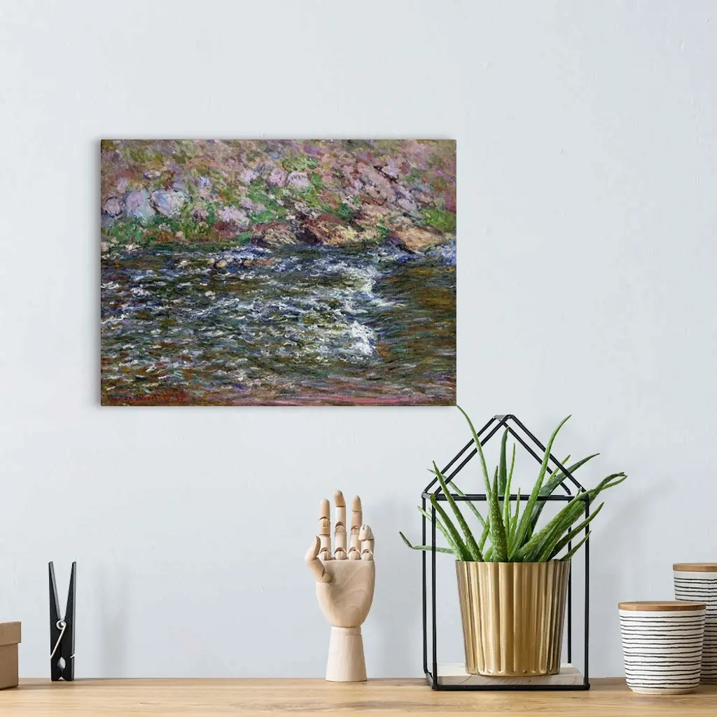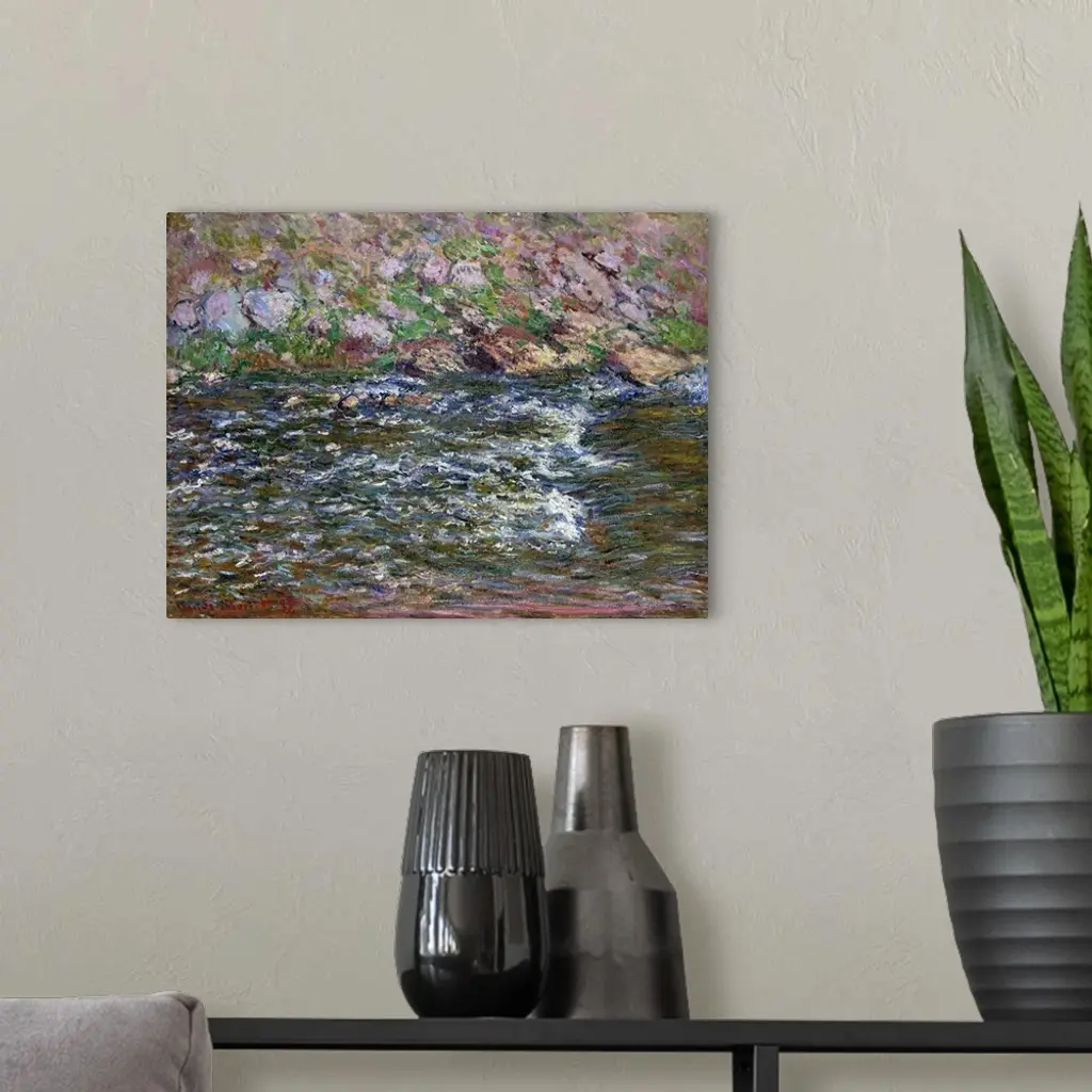 Monet spent the spring of 1889 painting the landscape around the confluence of two rivers, the Petite Creuse and the Grande Creuse, at the village of Fresselines in central France. For this view, which is nearly identical to another picture (private collection), he positioned his easel on the steep bank of the ravine edging the Petite Creuse, looking down on the shallow rapids from above. The resulting composition omits the sky and other indicators of depth, creating an ambiguous space that produces a strongly two-dimensional effect.