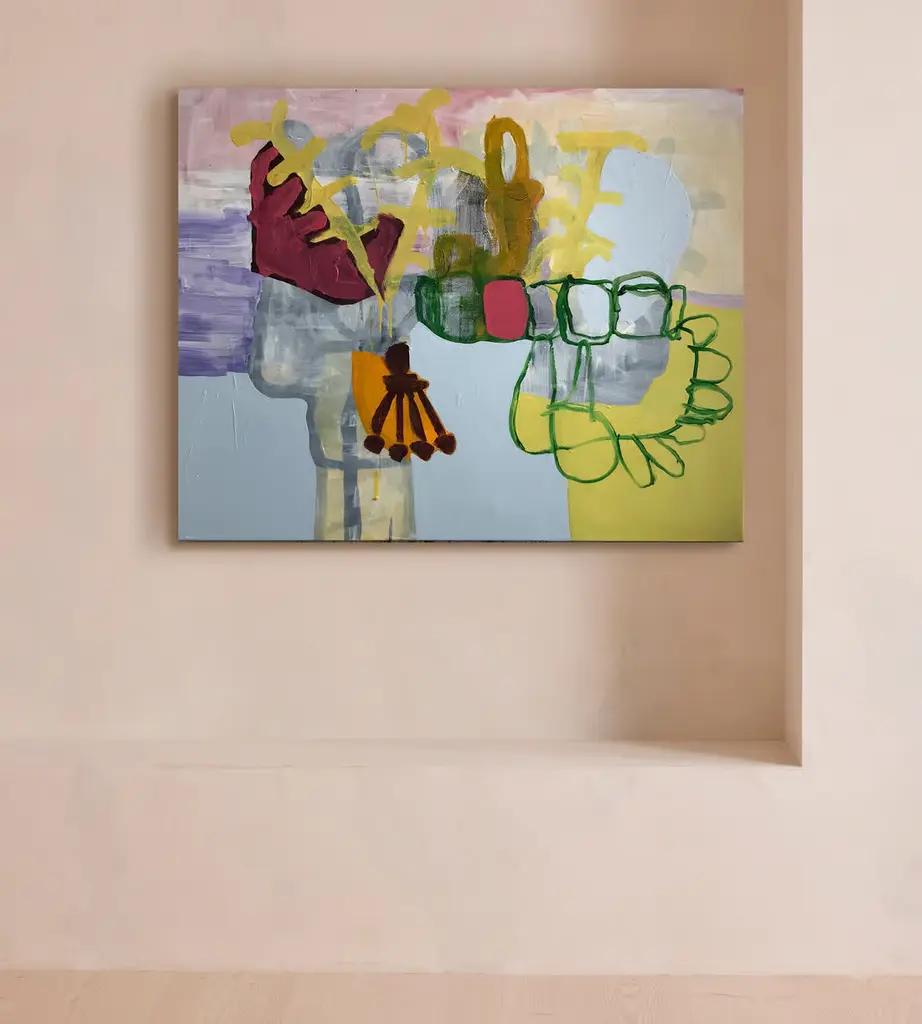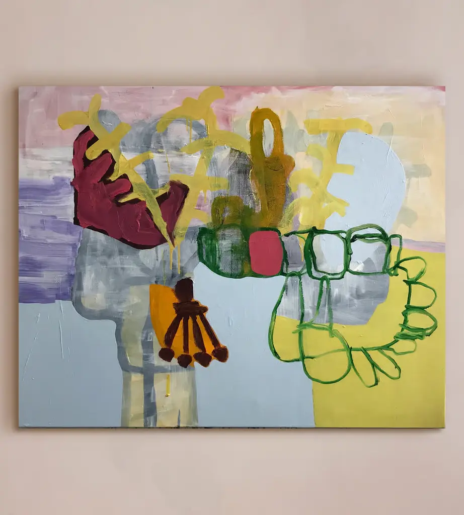An original abstract artwork created using oil paints on canvas. Although he also makes small sculptures and drawings, London-based Henry Ward works primarily as a painter. He creates all of his artworks either at his kitchen table, in his shed or at the studio as a way of opening up a constant dialogue between the way we work, and where.