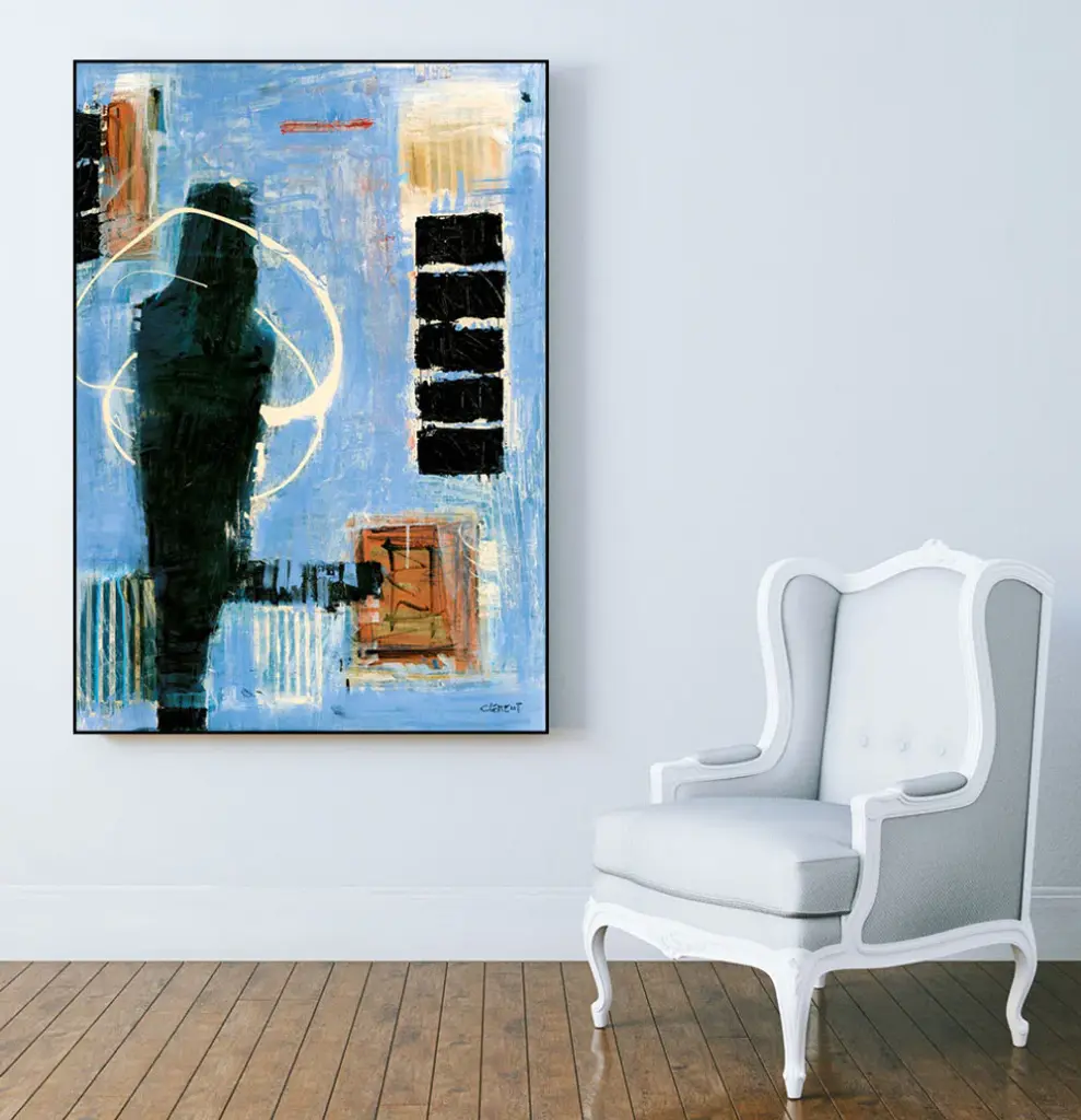 Your ready to hang artwork is printed on canvas then stretched and mounted to a 2 inch-thick, hand-stained black wood frame. Arrives at your door complete with an easy to use self-leveling hanging kit.