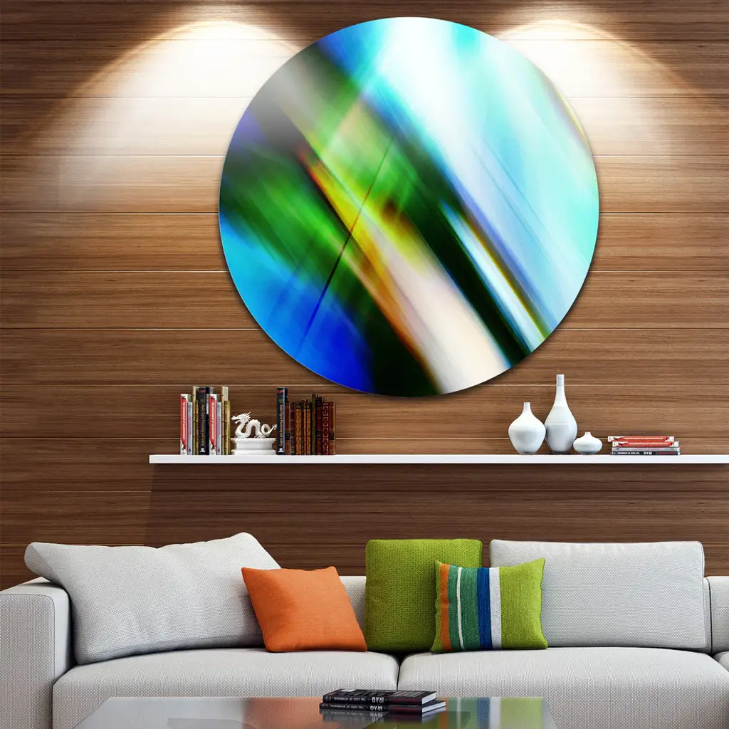 Rays Of Speed Blue Green, Abstract Digital Art Disc Metal Artwork, 11"