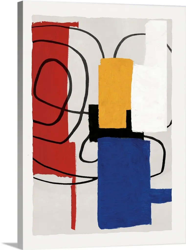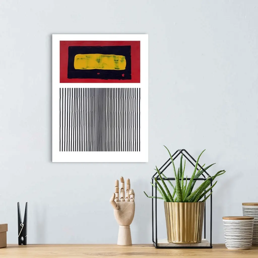 Abstract expression painting in which geometric color and lines invade the space in contrast with different elements: light, shadows, shape, texture and movement.