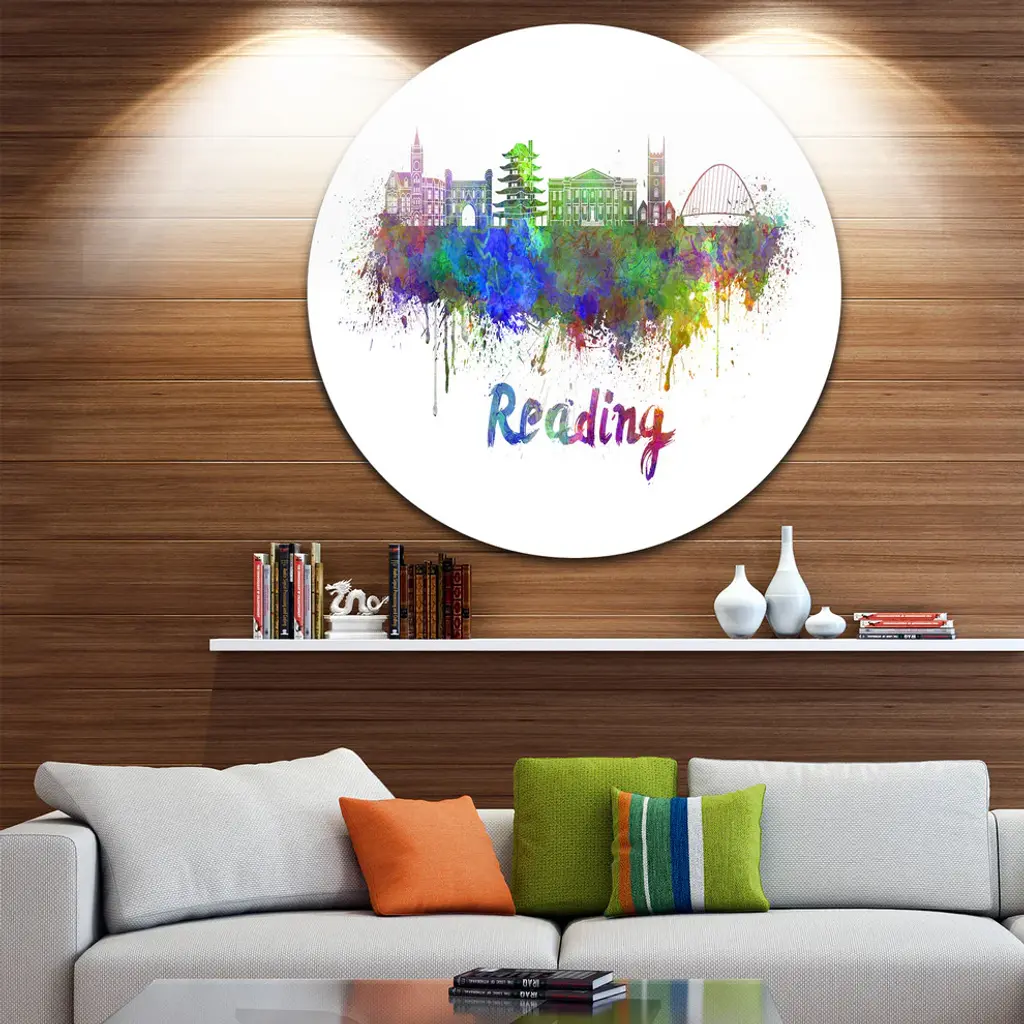 Reading Skyline, Cityscape Round Metal Wall Art, 36"