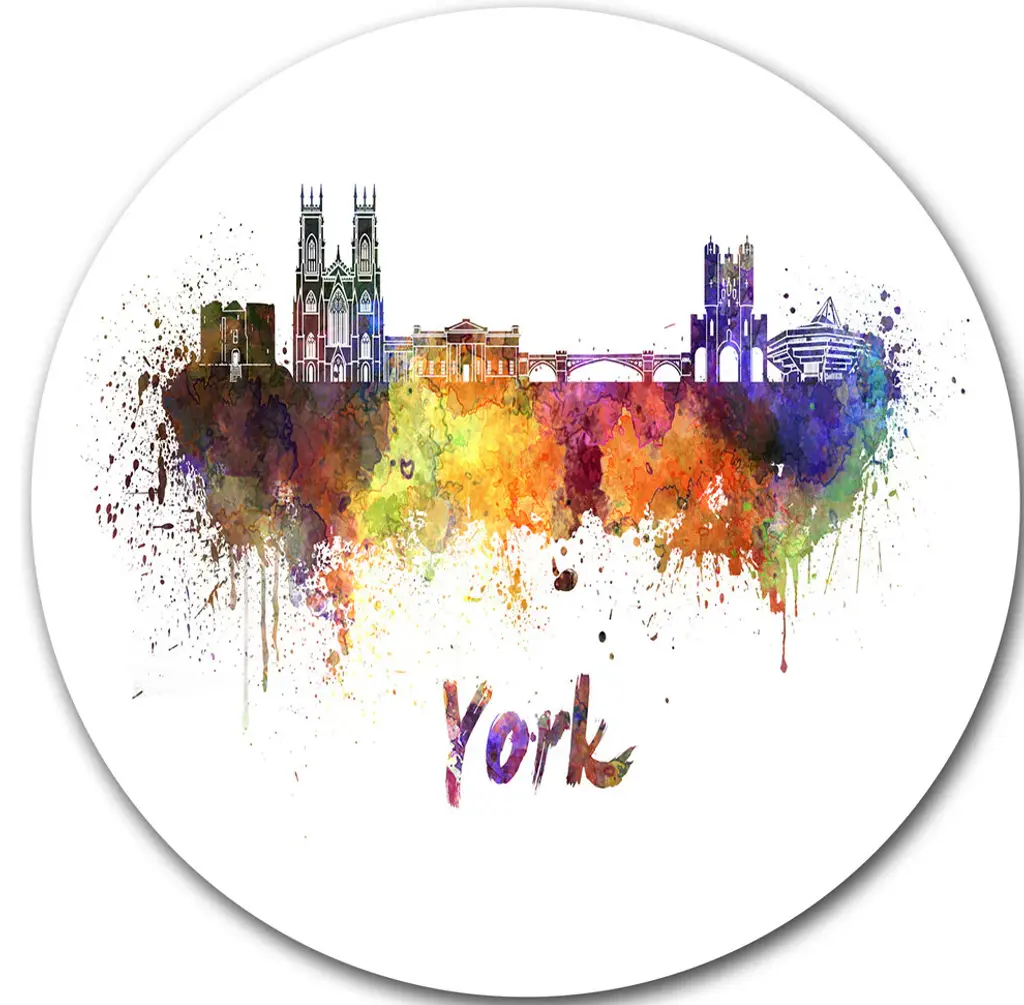 Bring Contemporary Abstraction to your home with this large Circle Metal wall art. This Reading Skyline Metal Artwork makes it the focal point of any room or office. - White Gloss Coating ensures colors are extra vibrant with light reflection.- Aluminum grade Sheet Metal with 1 inch mounting frame on the back giving the illusion that the artwork is floating on the wall..- Mounting Brackets are included along with instructions.- High Quality Digital images are created directly into a glossy aluminum panel producing a stunning and captivating print into the glossy finish of the metal.- Water, Fire and Scratch resistant HD Aluminum panels.- Looks better than any photo paper and guaranteed to last at least 20 years- Easy to clean with a microfiber cloth. Colors are far superior to regular Canvas Art. - Easy to Hang