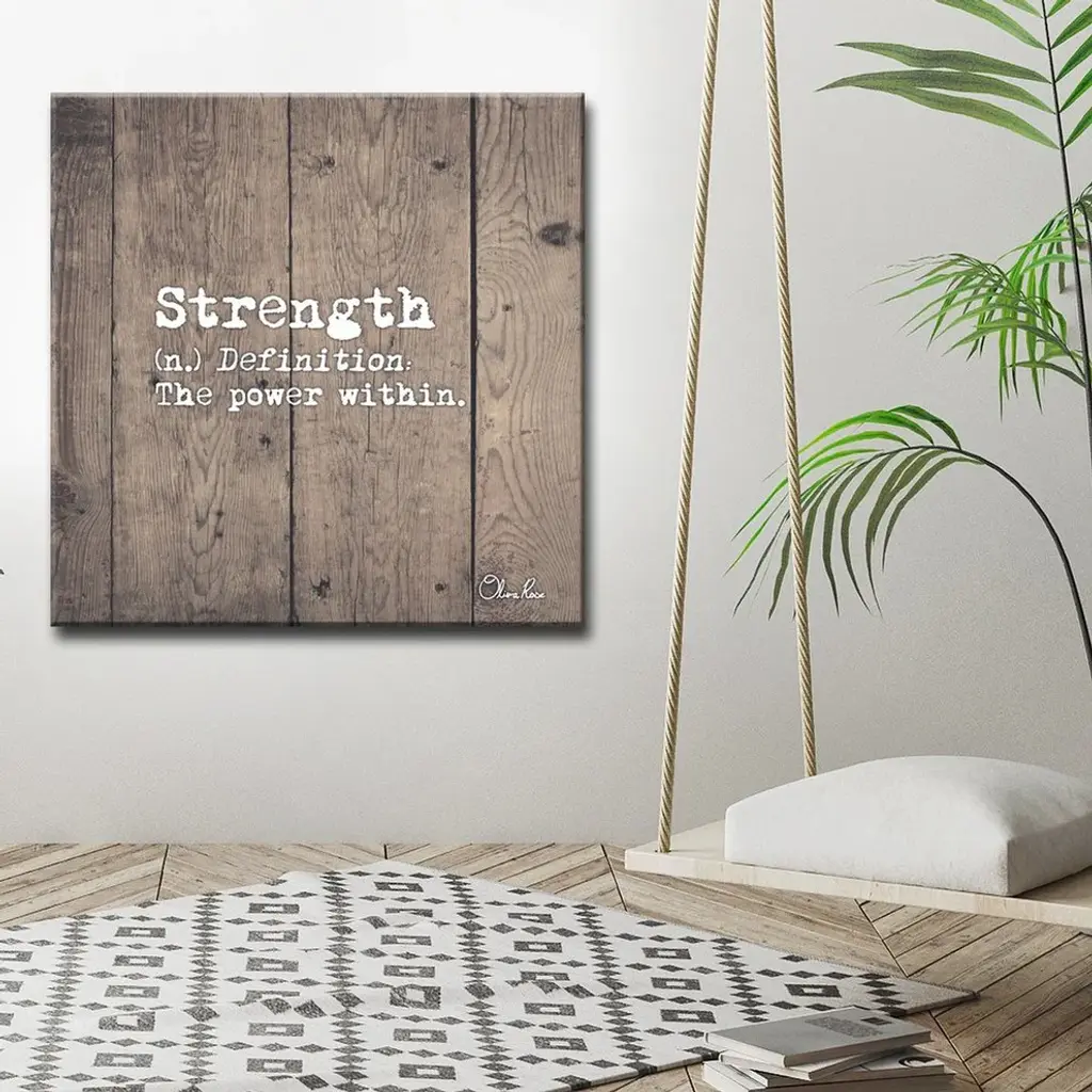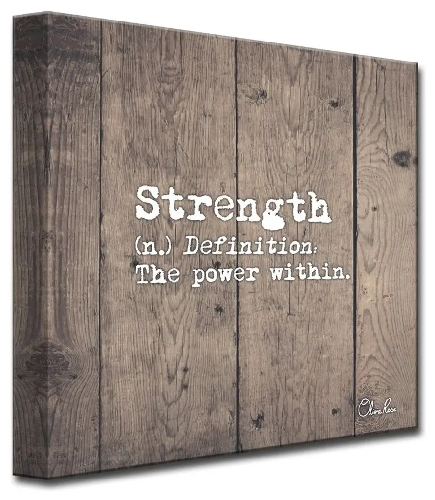 Be Inspired and Inspire with Olivia Rose ''Define Strength'' Inspirational Wall Art. A simple sentiment to incorporate positivity and encouragement into your space is written in this Textual Art Made in the USA by Ready2HangArt.Masterfully produced at R2H factory in Lake Worth, Florida on water resistant canvas enhanced with a matte UV-Resistant finish and skillfully wrapped on a wood frame finished with a rear saw-tooth hanger for simple install.Manufacturer: Ready2HangArtTitle: Define StrengthBrand: Olivia RoseOrientation: SquareShape: SquareColors: Brown, Wood Grain, WhiteModel No. VMTQ041Sizes:1. 12 in. H x 12 in. W x 1.5 inches deep2. 16 in. H x 16 in. W x 1.5 inches deep3. 20 in. H x 20 in. W x 1.5 inches deep4. 30 in. H x 30 in. W x 1.5 inches deepReady2HangArt is an American small business, dedicated to enhancing Home Decor with innovative designs, and locally made products at a competitive value. Proudly Made in America,