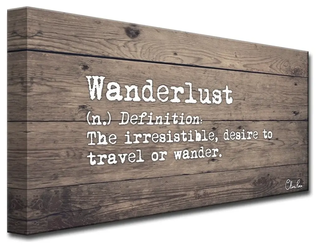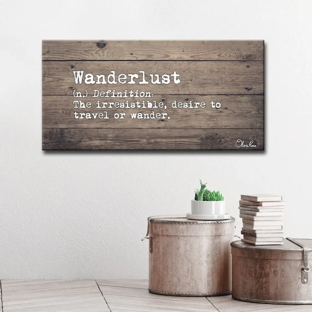 Be Inspired and Inspire with Olivia Rose ''Define Wanderlust'' Inspirational Wall Art. A simple sentiment to incorporate adventurous whimsy into your space is written in this Textual Art Made in the USA by Ready2HangArt.Masterfully produced at R2H factory in Lake Worth, Florida on water resistant canvas enhanced with a matte UV-Resistant finish and skillfully wrapped on a wood frame finished with a rear saw-tooth hanger for simple install.Manufacturer: Ready2HangArtTitle: Define WanderlustBrand: Olivia RoseOrientation: LandscapeShape: RectangleColors: Brown, Wood Grain, WhiteModel No. VMTQ044Sizes:1. 12 in. H x 24 in. W x 1.5 inches deep2. 18 in. H x 36 in. W x 1.5 inches deep3. 24 in. H x 48 in. W x 1.5 inches deepReady2HangArt is an American small business, dedicated to enhancing Home Decor with innovative designs, and locally made products at a competitive value. Proudly Made in America,