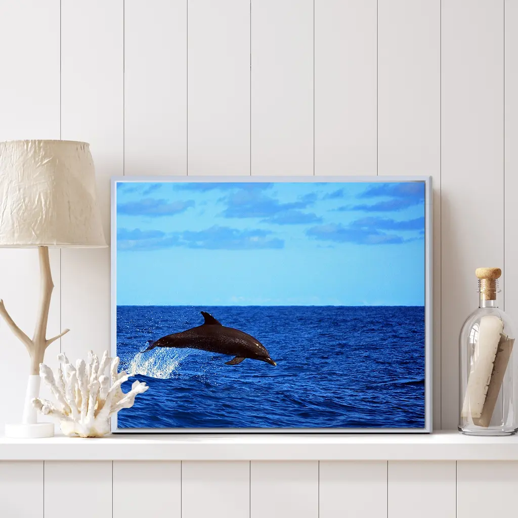 Ready2hangart 'Dolphin' Framed Canvas Wall Art - 20 In. W X 16 In. H - Framed - Wood - White
