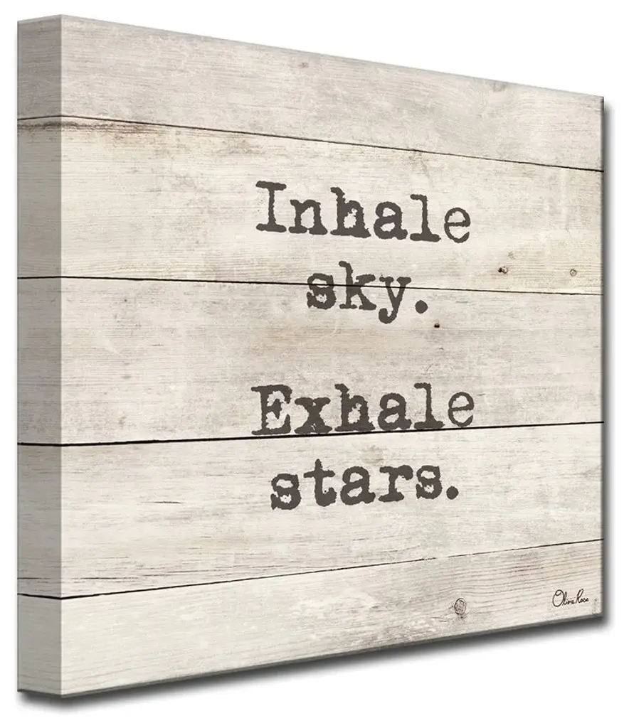 Be Inspired and Inspire with Olivia Rose ''Exhale-Zen'' Inspirational Wall Art. A simple sentiment to incorporate positivity and encouragement into your space is written in this Textual Art Made in the USA by Ready2HangArt.Masterfully produced at R2H factory in Lake Worth, Florida on water resistant canvas enhanced with a matte UV-Resistant finish and skillfully wrapped on a wood frame finished with a rear saw-tooth hanger for simple install.Manufacturer: Ready2HangArtTitle: Exhale-ZenBrand: Olivia RoseOrientation: SquareShape: SquareColors: Brown, Wood Grain, WhiteModel No. VMTQ062Sizes:1. 12 in. H x 12 in. W x 1.5 inches deep2. 16 in. H x 16 in. W x 1.5 inches deep3. 20 in. H x 20 in. W x 1.5 inches deep4. 30 in. H x 30 in. W x 1.5 inches deepReady2HangArt is an American small business, dedicated to enhancing Home Decor with innovative designs, and locally made products at a competitive value. Proudly Made in America,
