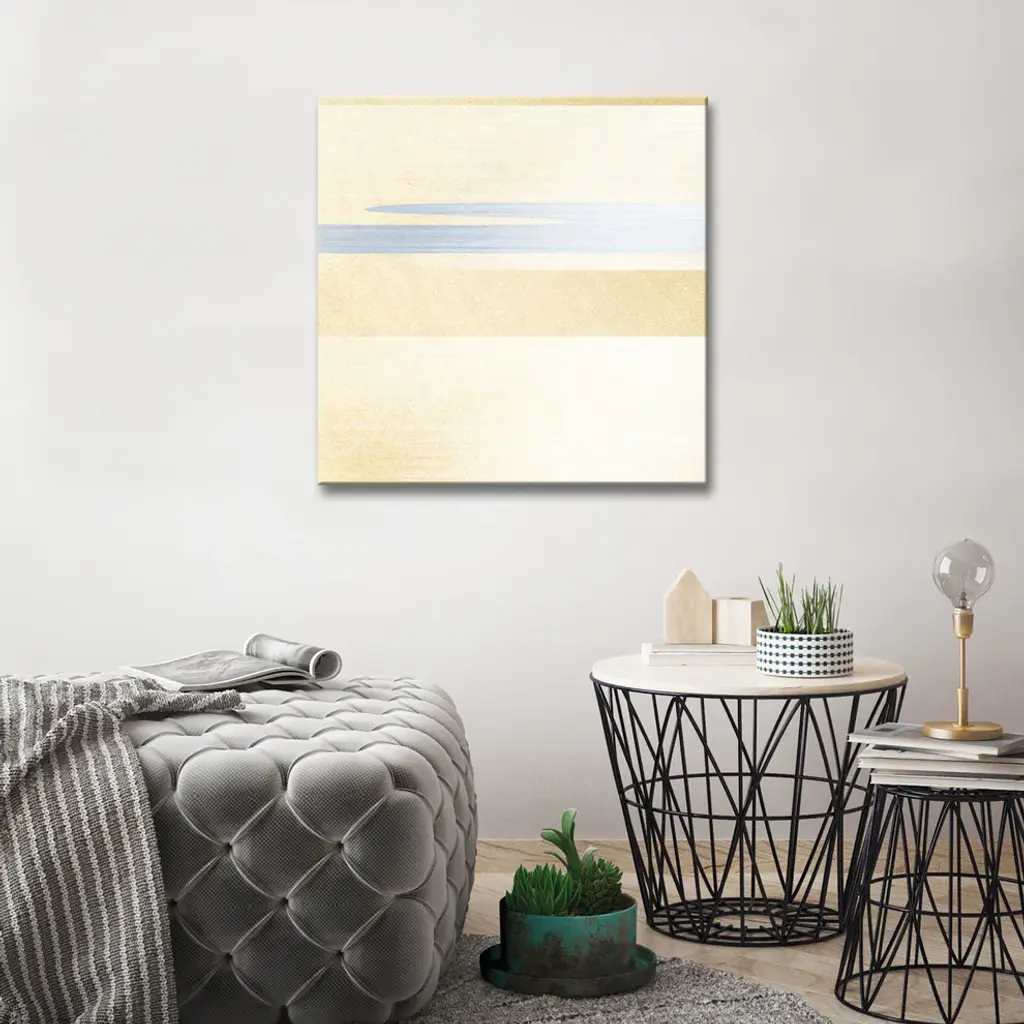 Glimmering and shimmering this Mid Century Modern wall art Decor, ''Gilt Mod XXXIV'', will add an abstract feel to any modern room. With the stunning look of gold and sweeping lines, it will never fail to make a statement.Masterfully produced at R2H factory in Lake Worth, Florida on water resistant canvas enhanced with a matte UV-Resistant finish and skillfully wrapped on a wood frame finished with a rear saw-tooth hanger for simple install. Care Instructions: To clean, wipe with a damp cloth. Do not use cleaning solutions.•••Manufacturer: Ready2HangArt•••Title: Gilt Mod XXXIV•••Model No. VMCC041•••Orientation: Square•••Shape: Square•••Colors: Gold, Sand, Cream, Blue•••Materials: Canvas, WoodSize Options:•••12 in. H x 12 in. W •••20 in. H x 20 in. W •••30 in. H x 30 in. W Ready2HangArt is a Florida-based small business, dedicated to enhancing Home Decor with innovative designs, and locally made products at a competitive value. Proudly Made in America,
