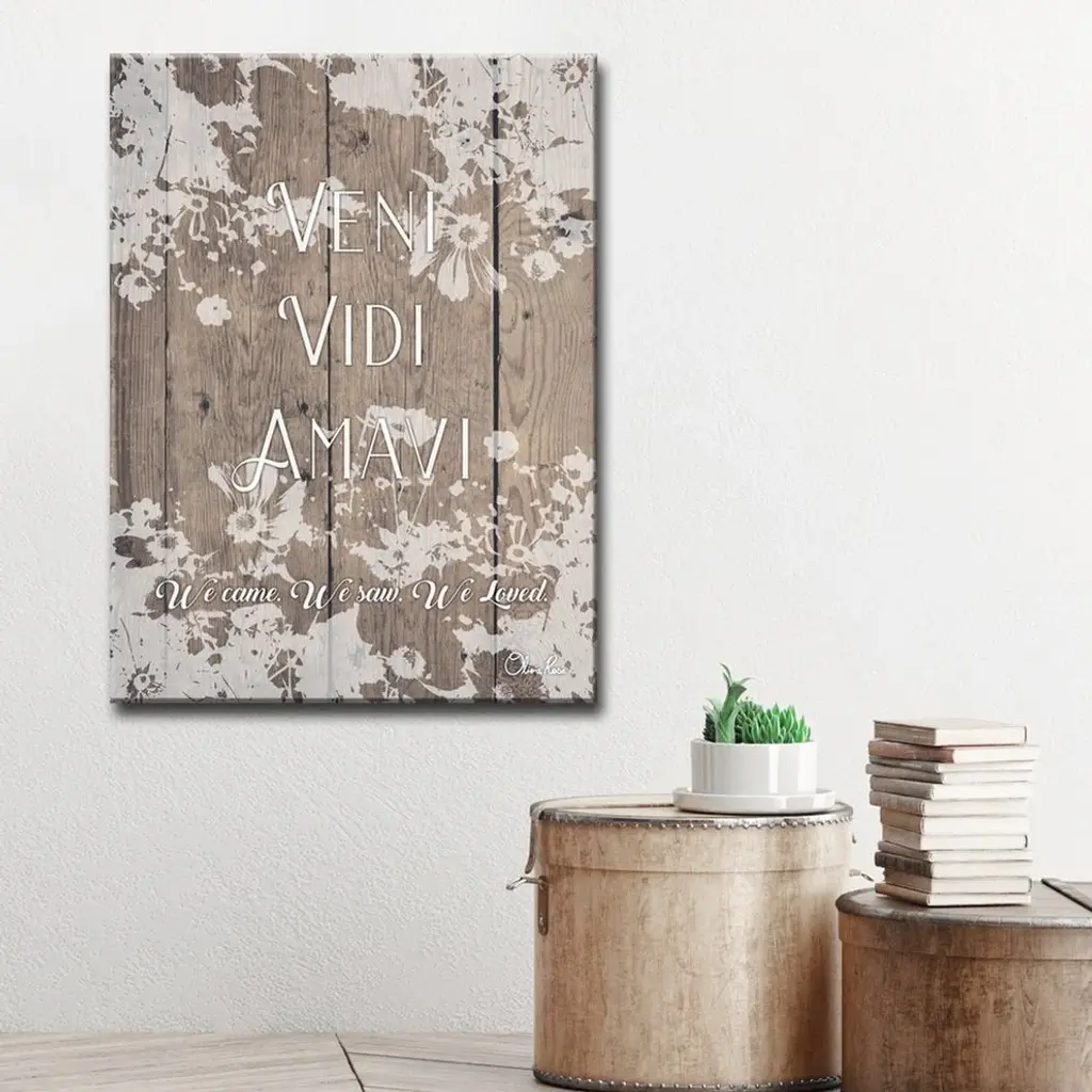 Be Inspired and Inspire with Olivia Rose ''Veni'' Inspirational Wall Art. A beautiful Latin expression to incorporate love and positivity into your space is written in this Textual Art Made in the USA by Ready2HangArt.Masterfully produced at R2H factory in Lake Worth, Florida on water resistant canvas enhanced with a matte UV-Resistant finish and skillfully wrapped on a wood frame finished with a rear saw-tooth hanger for simple install.Manufacturer: Ready2HangArtTitle: VeniBrand: Olivia RoseOrientation: PortraitShape: RectangleColors: Brown, Wood Grain, WhiteModel No. VMTQ032Sizes:1. 16 in. H x 12 in. W x 1.5 inches deep2. 20 in. H x 16 in. W x 1.5 inches deep3. 30 in. H x 20 in. W x 1.5 inches deep4. 40 in. H x 30 in. W x 1.5 inches deepReady2HangArt is an American small business, dedicated to enhancing Home Decor with innovative designs, and locally made products at a competitive value. Proudly Made in America,