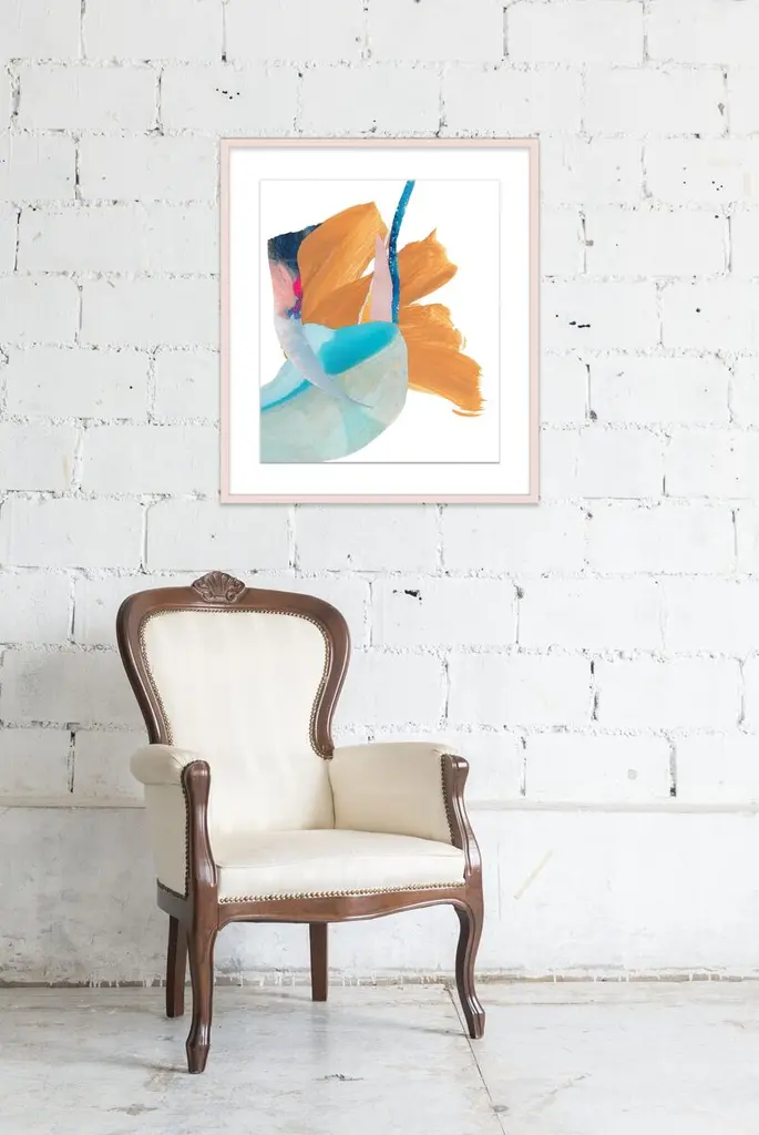 Seen first at One Kings Lane: A stunning blend of color and form, this abstraction from Rebecca Stern is printed on watercolor paper and floated over a white mat. Displayed in a pine frame, this piece arrives ready to hang.Rebecca Stern is an artist living and working in Stamford, CT. She graduated with honors from Lesley University College of Art and Design in 2009. Her work is in numerous private collections and she has participated in solo and group exhibitions across the country for the past ten years. Rebecca uses acrylic paint, collage, thread, and drawing materials to produce her abstract work, and considers each piece a “mental landscape” that investigates the complexities of the mind. She is intrigued by the juxtaposition of intentionality and expressive freedom that exists within the materiality of different mediums and the process it takes to find a balance.