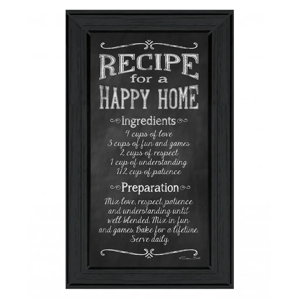 The recipe for a happy home 2 black framed print wall art is the perfect decorative accessory for your home. This print is a visual artistic expression that allows you to decorate your space in style. Reproduced for you on wood, this hanging decorative accent will be a trendy and fashionable way to dress your walls in a rustic and modern farmhouse vibe. Adding this hanging wall art to your space to make your room feel more finished and attractive. Instantly liven up your space with this art that brings color and dimension to your walls. 21" H x 12" W x 1" D