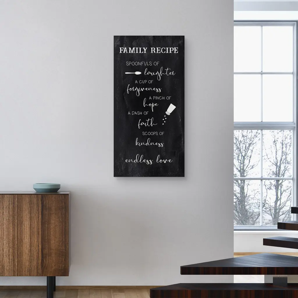Add an air of fashion to your room and rejuvenate the space with this recipe for family white framed print wall art. This print is a visual artistic expression that allows you to decorate your space in style. Reproduced for you on wood, this hanging decorative accent will be a trendy and fashionable way to dress your walls in a rustic and modern farmhouse vibe. Hang on your wall to add some up to date fashion and decoration. Utilize this opportunity to create a focal point in the room with this fabulous wall decor option. 21" H x 12" W x 1" D