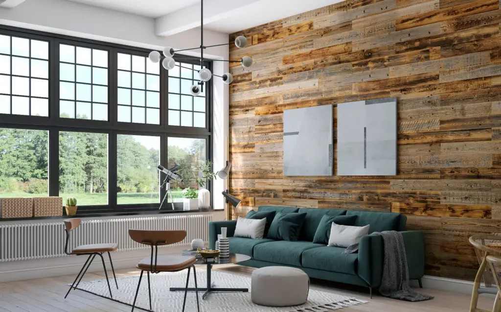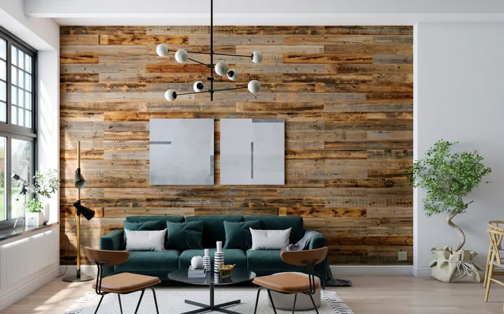 - 100% SOLID WOOD (RECLAIMED WOOD) - SPECIFICATIONS: Each reclaimed wood plank is 46 3/8 in. by 5 in. There are 12 reclaimed wood planks per box with a total coverage area of 19.5 square feet. All wood panels are about ¼"™"™ thick and come in a variety of finishes. - NO EXPERIENCE NEEDED: Easy glue and nails installation. For our barnwood planks, we recommend using high-quality construction adhesive and 18 gauge brad nails. We cut our barn wood planks precisely to fit each other perfectly making the installation process smooth but fun! For better results, when it comes to cutting any excess from the wood wall panels we suggest using either a Jigsaw, Circular Saw, Miter Saw, Table saw or Fine Tooth Hand Saw and don"™t forget a dust mask! Our wood panels for walls are ideal for DIY projects. - VARIABLE SURFACE APPLICATION: Our reclaimed wood planks can be installed on different types of surfaces including backsplashes, textured walls, kitchens and ceilings. It is important to be sure the application surface is completely dry and clear of dust/debris to ensure proper adhesion. Reclaimed wood paneling is suitable for installation in places with higher humidity. However, we do not suggest installing our reclaimed wood wall anywhere where it will be in direct contact with running water. - NATURAL RUSTIC FEEL: Our rustic wood paneling for walls are between 20-30 years old and have been weathered over time by nature and its elements, they include characteristics like deeply weathered grooves and natural splitting, enabling to capture that rustic warmth that can only be achieved with real barnwood planks. - GUARANTEED QUALITY: Each reclaimed wood panel is handmade and unique. We select each wood plank individually by hand to ensure superb quality. For better results, depending on the wood wall covering you choose, for example if your wall is a light color and your wood paneling is a darker shade, we suggest painting your surface a color close enough to the color of your wood wall paneling. Our wall panels for interior wall decor have a class C fire rating.