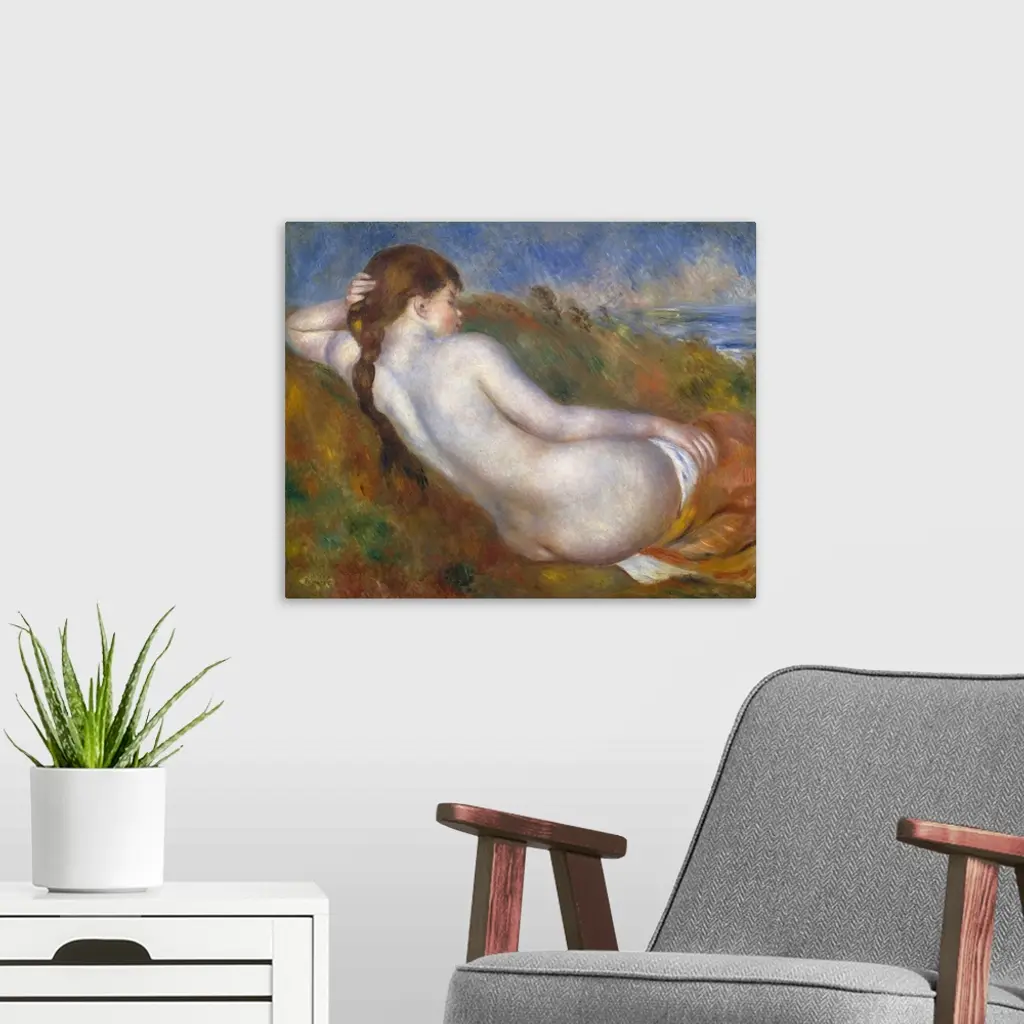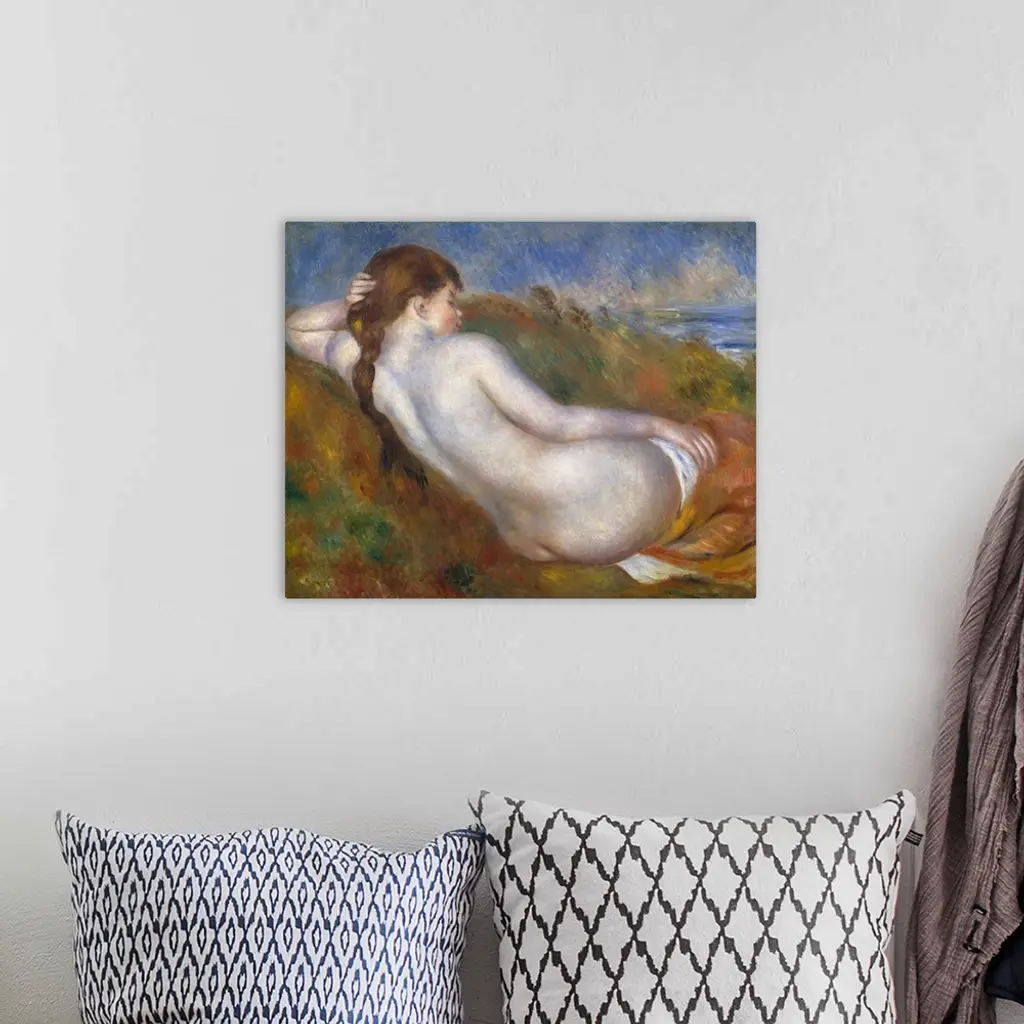 Nudes and the grand tradition of classical art preoccupied Renoir in the 1880s. In this painting, he paid homage to Ingres's Grande Odalisque?(Musee du Louvre, Paris), although he transformed Ingres's cool courtesan into a healthy, pink-cheeked girl, and the harem into an Impressionist landscape reminiscent of the Channel coast.�