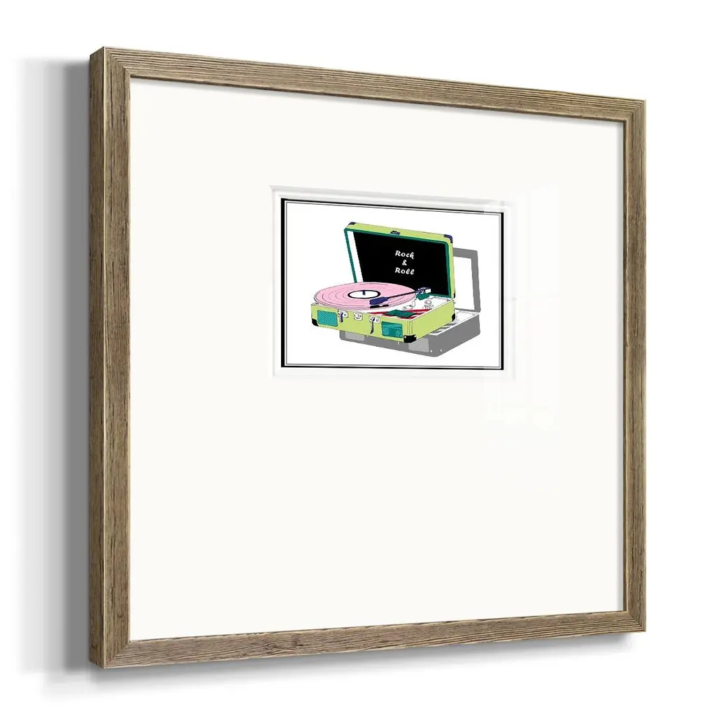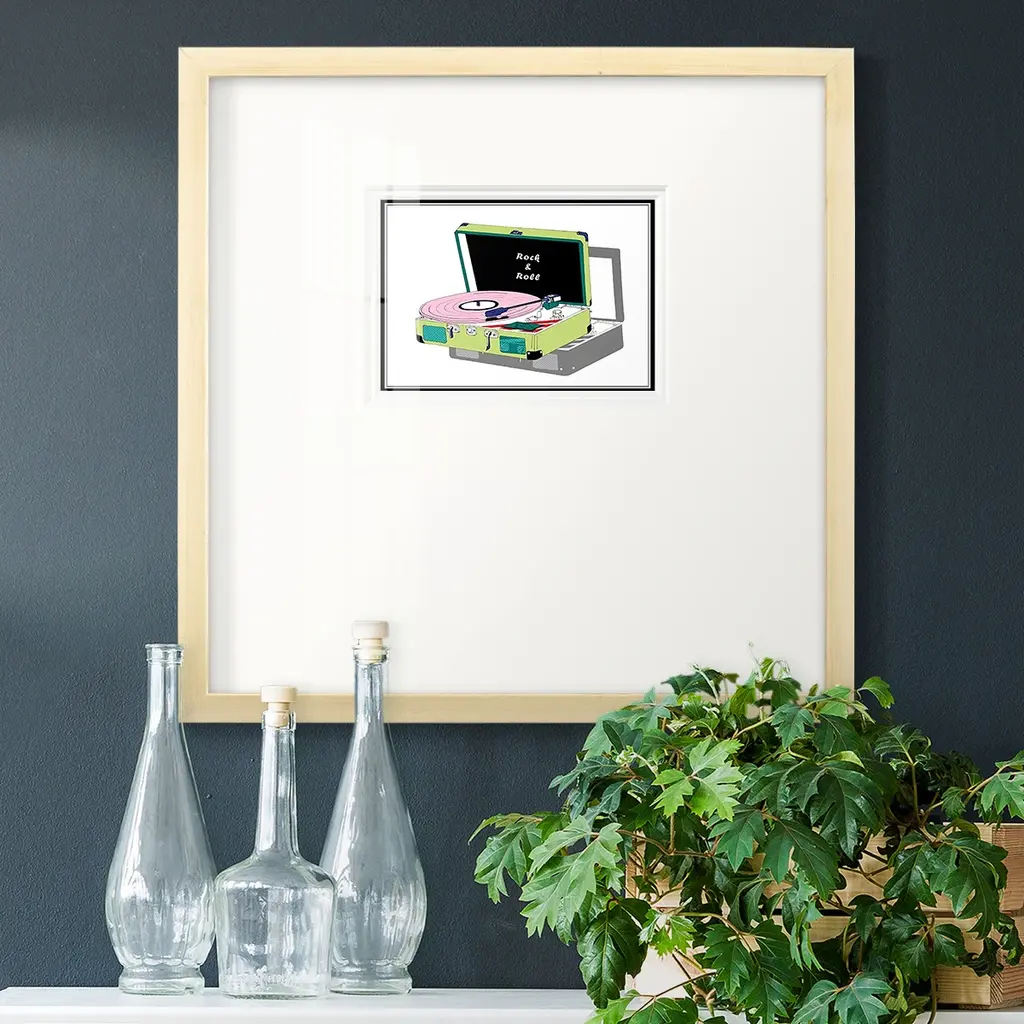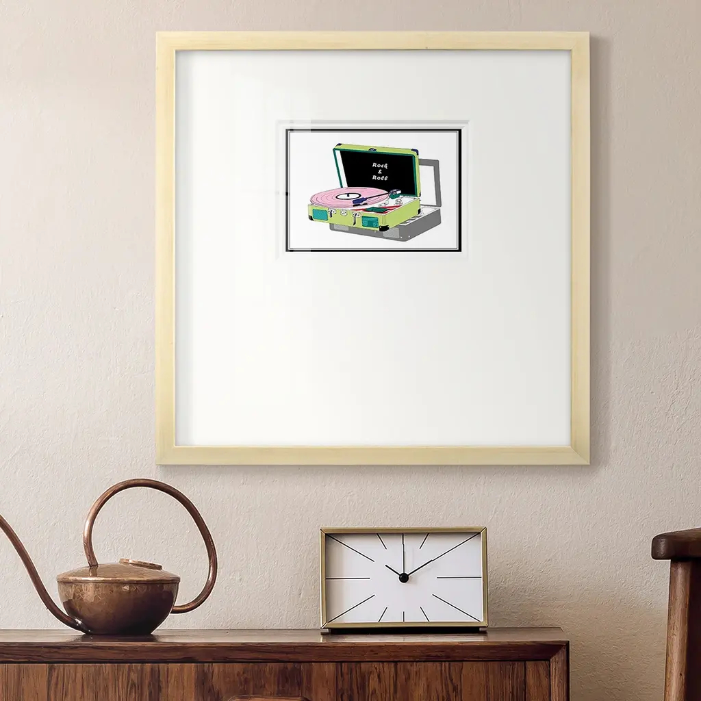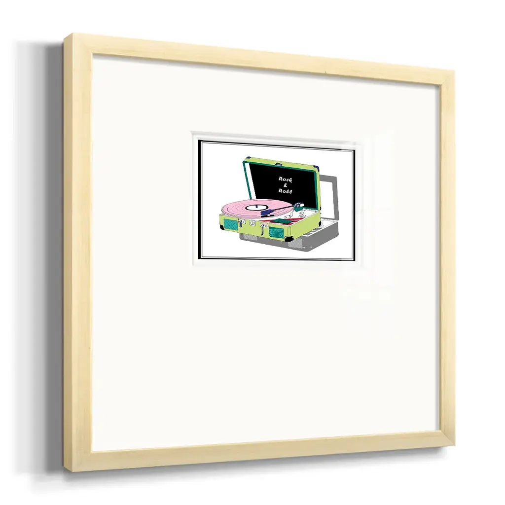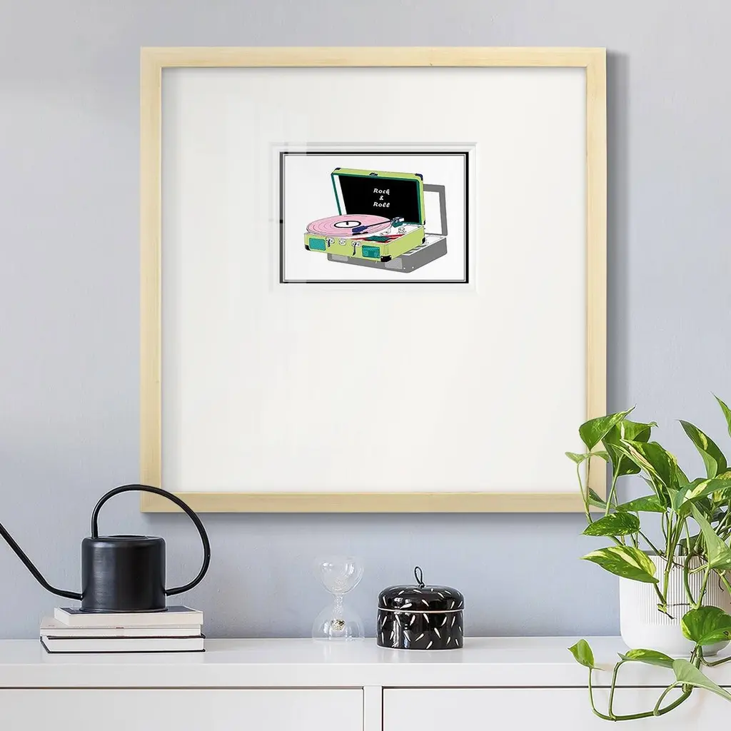 Record Shop IIPremium Framed Print A framed cold pressed paper print featuring superior double matting and quality frame. 2 SIZES AVAILABLE 16''X16''' - Overall Size 20''X20''' - Overall Size Each piece is made to order. Each piece comes with hanging hardware. Made in the USA Ready to Hang Giclee Paper Print Plexiglass Beveled Matt Board Double Matte Board