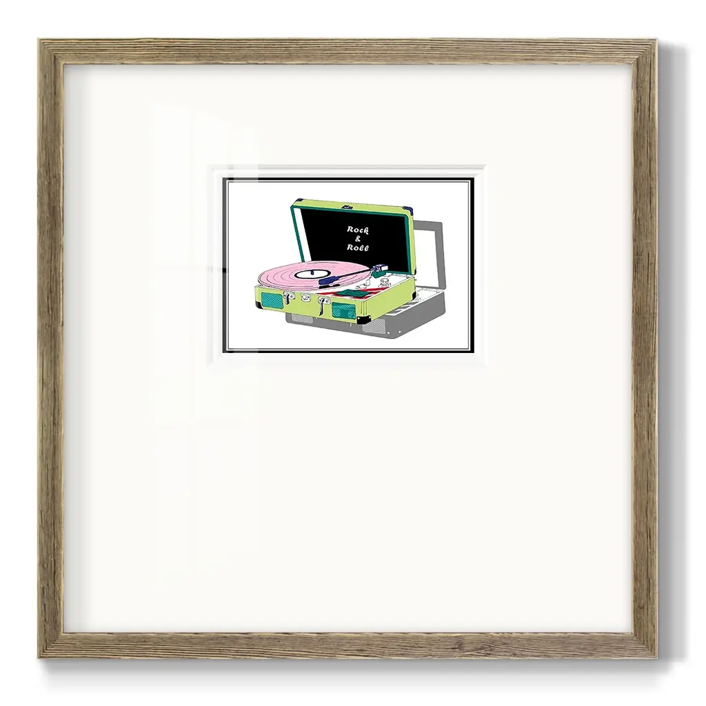 Record Shop IIPremium Framed Print A framed cold pressed paper print featuring superior double matting and quality frame. 2 SIZES AVAILABLE 16''X16''' - Overall Size 20''X20''' - Overall Size Each piece is made to order. Each piece comes with hanging hardware. Made in the USA Ready to Hang Giclee Paper Print Plexiglass Beveled Matt Board Double Matte Board
