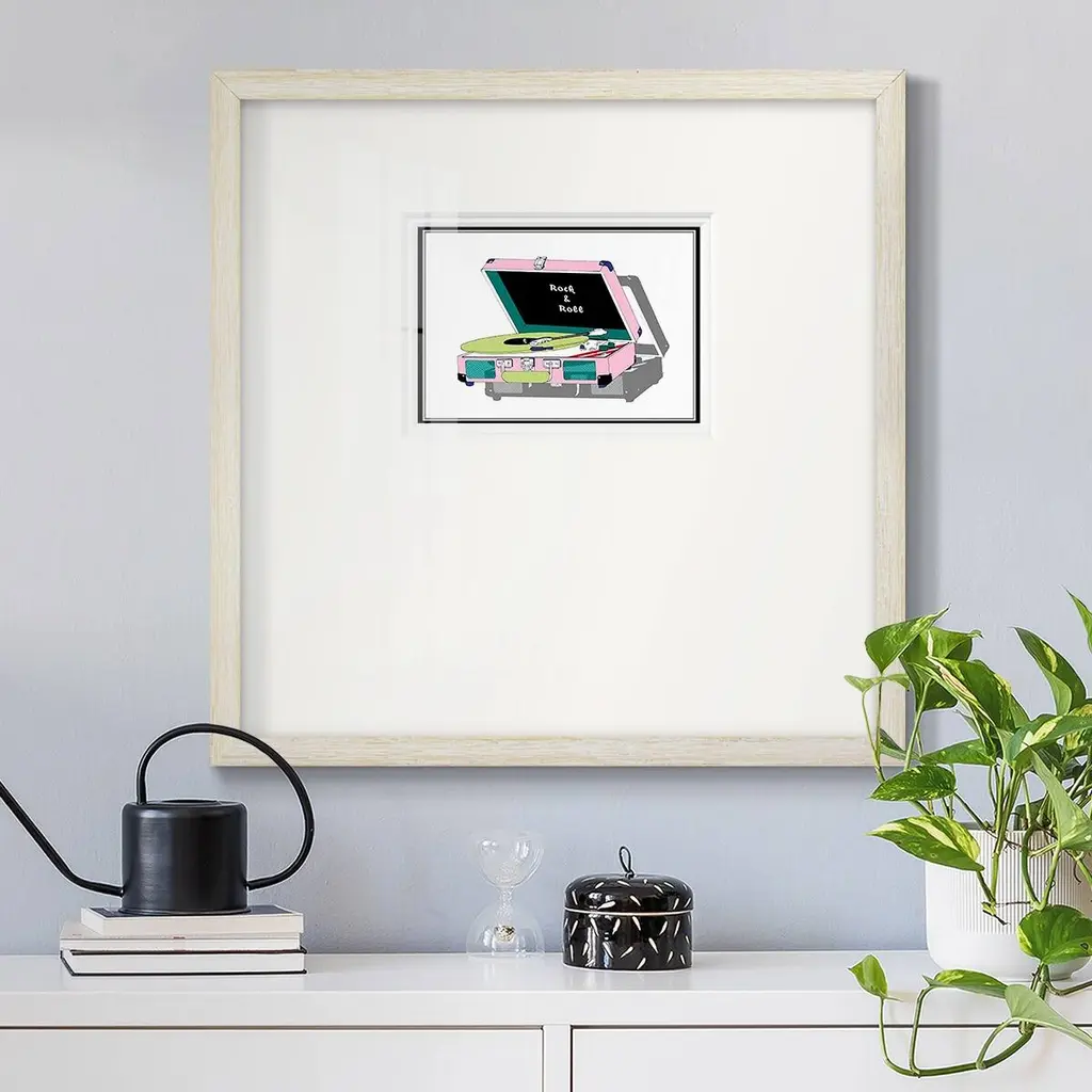 Record Shop IPremium Framed Print A framed cold pressed paper print featuring superior double matting and quality frame. 2 SIZES AVAILABLE 16''X16''' - Overall Size 20''X20''' - Overall Size Each piece is made to order. Each piece comes with hanging hardware. Made in the USA Ready to Hang Giclee Paper Print Plexiglass Beveled Matt Board Double Matte Board