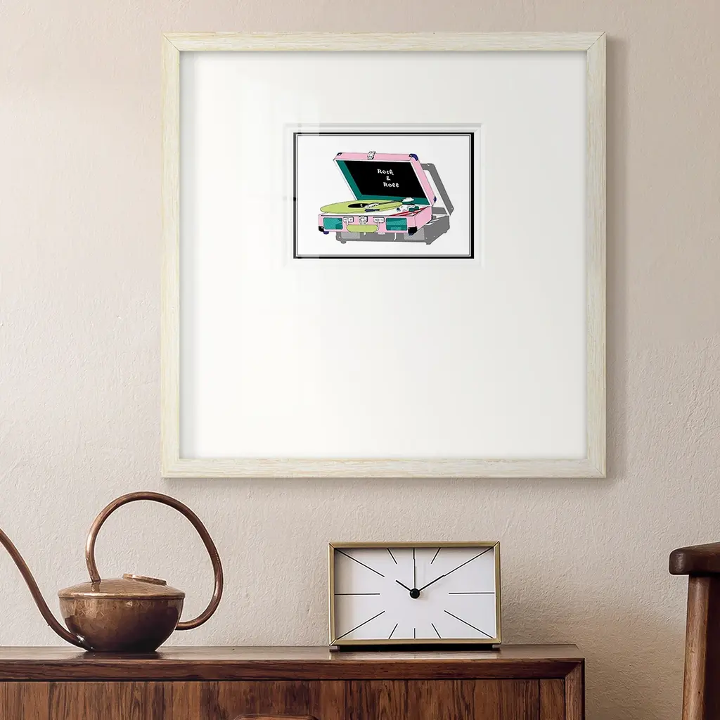 Record Shop IPremium Framed Print A framed cold pressed paper print featuring superior double matting and quality frame. 2 SIZES AVAILABLE 16''X16''' - Overall Size 20''X20''' - Overall Size Each piece is made to order. Each piece comes with hanging hardware. Made in the USA Ready to Hang Giclee Paper Print Plexiglass Beveled Matt Board Double Matte Board