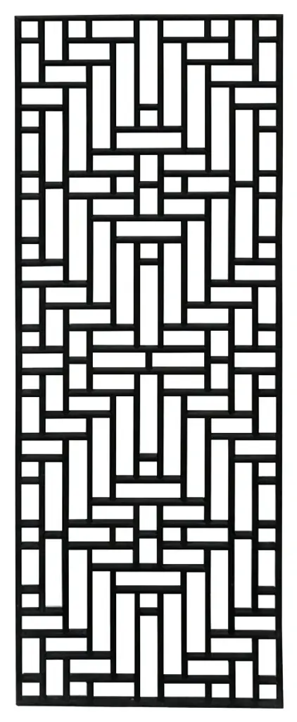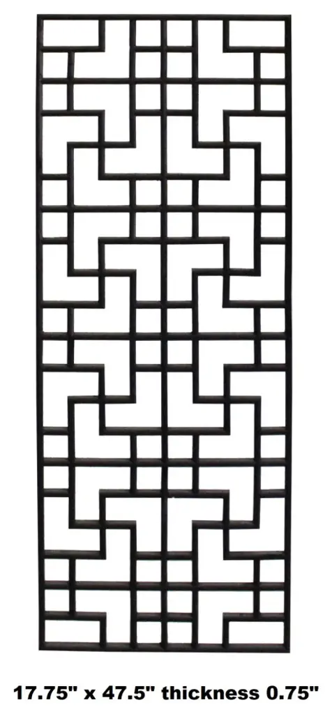 This is a traditional Chinese decorative panel with a geometric pattern in a rectangular shape. It is stained with dark brown color.Dimensions: 17.75" x 47.5" thickness 0.75"Origin: ChinaMaterial: Solid Elm WoodCondition: hand made, rough wood finish, variation in detailUSA domestic continental buyers of 48 states pay $145 shipping (buyers of Hawaii, Alaska, US Islands, Florida Keywest, and Canada pays the extra shipping cost). Insurance and handling charges are already included in the shipping cost. In store pick up is highly welcomed if you are in San Francisco Bay Area. (No charge)