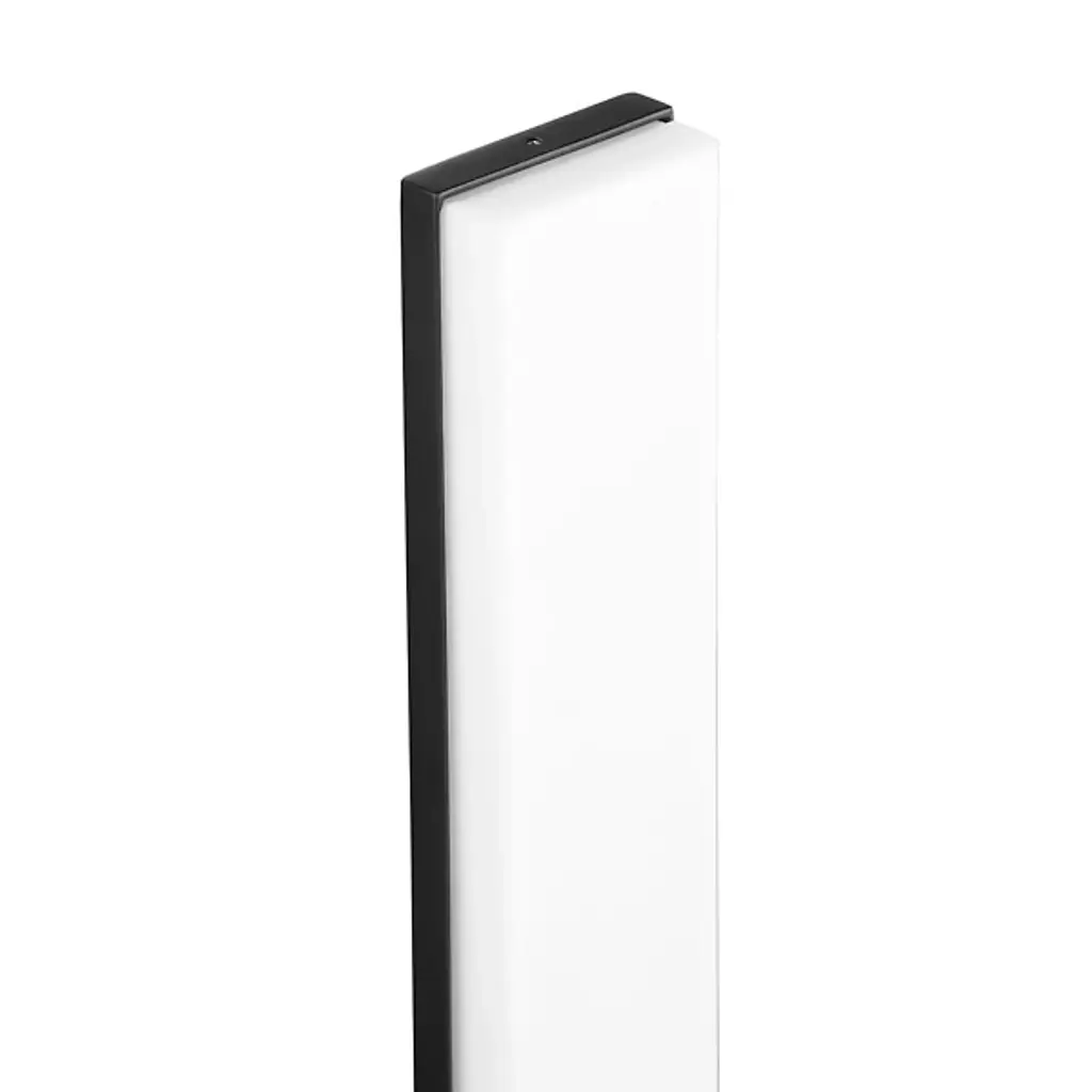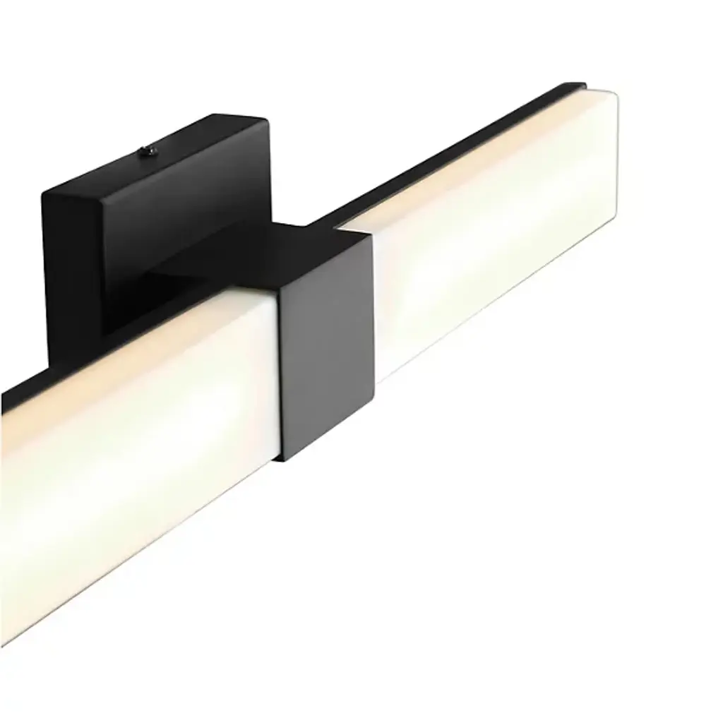 Transform inside spaces with the essential, layered design of the Rectangular LED Vanity Light from Quorum International. Able to be mounted vertically or horizontally, a square wall plate secures the fixture, extending strong, energy-efficient lamping beneath strips of acrylic diffusers. The matte structure contrasts well with the translucent diffuser, extending a warm glow across its environs.