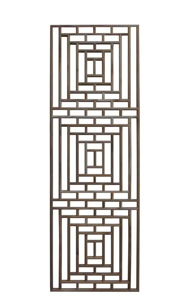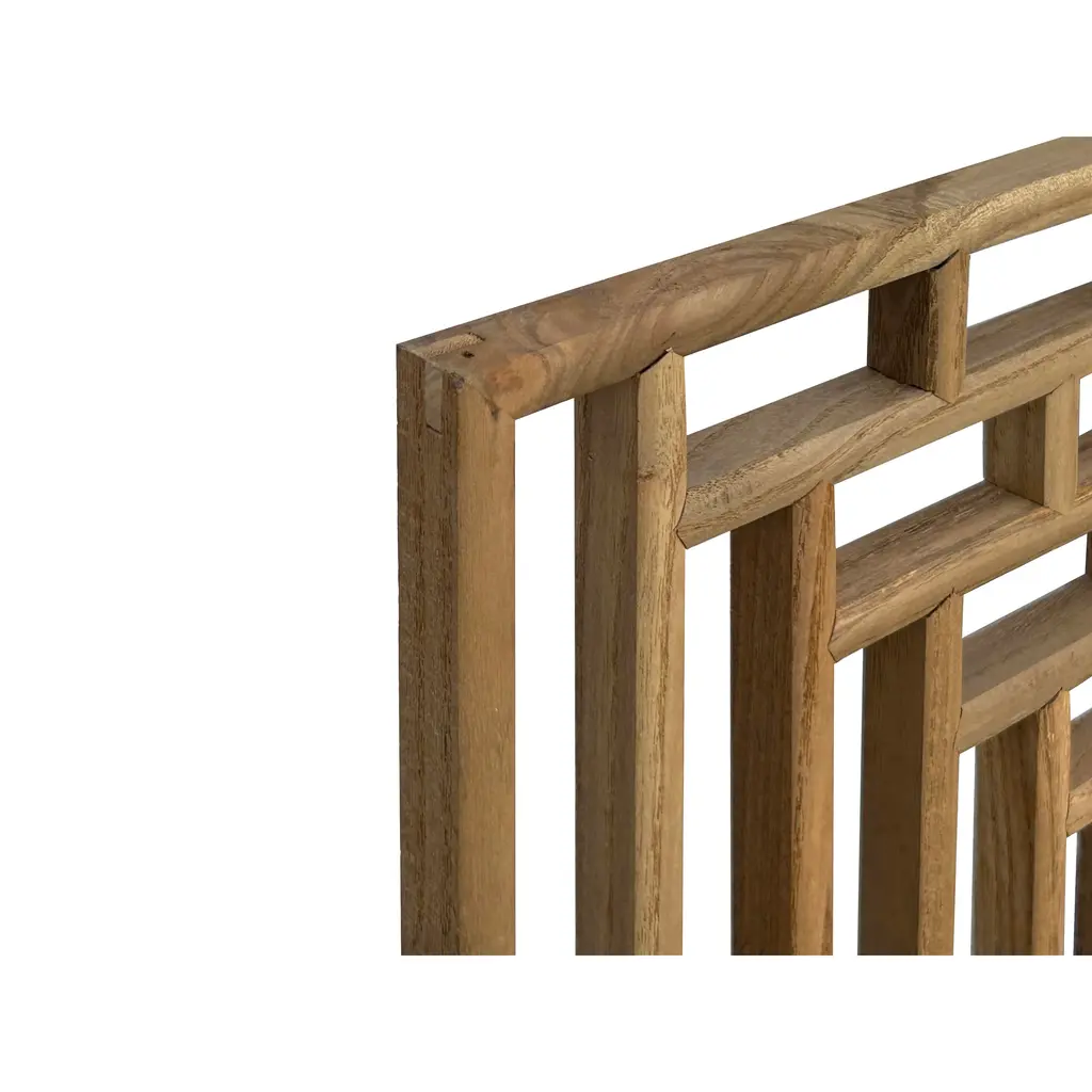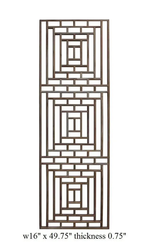 This rectangular wall panel is crafted from natural light tan wood, featuring a minimalist geometric pattern. The clean lines and understated design highlight the beauty of the natural wood grain, offering a modern yet rustic touch. Perfect as a statement piece, this wall panel adds texture and visual interest to any space while maintaining a serene, organic aesthetic. Dimensions: w16" x 49.75 " thickness 0.75" Origin: China Material: Solid Elm Wood Condition: hand made, rustic rough finish, variation in detail