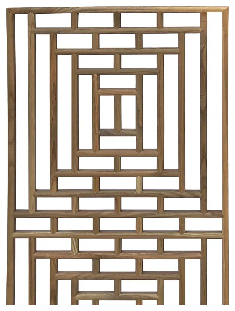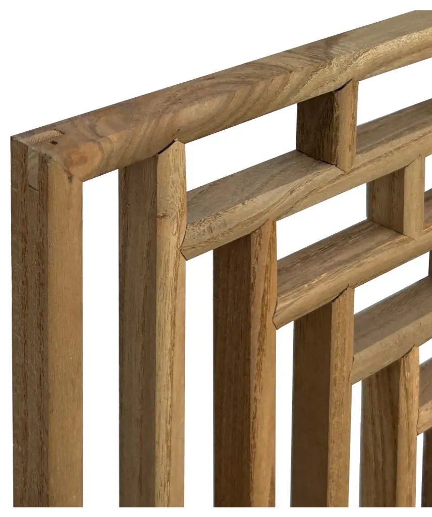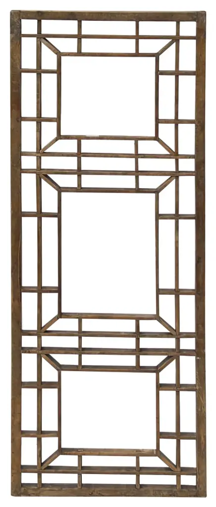 This rectangular wall panel is crafted from natural light tan wood, featuring a minimalist geometric pattern. The clean lines and understated design highlight the beauty of the natural wood grain, offering a modern yet rustic touch. Perfect as a statement piece, this wall panel adds texture and visual interest to any space while maintaining a serene, organic aesthetic.Dimensions: w16" x 49.75 " thickness 0.75"Origin: ChinaMaterial: Solid Elm WoodCondition: hand made, rustic rough finish, variation in detail