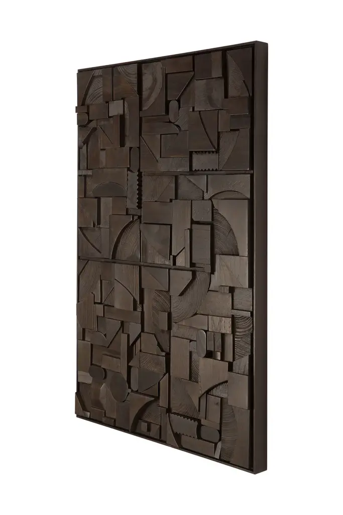 Enhance your interiors effortlessly with the Rectangular Puzzle Wall Art by Ethnicraft. Individually handcrafted, each Bricks wall art stands as a testament to craftsmanship, ensuring that no two creations are exactly alike. Dimension, depth, and intrigue are built within layers of solid recycled wood and offcuts thoughtfully repurposed from production. This blend of eco-conscious sourcing and artistic ingenuity upgrades your interior decor whether you choose to hang it as an individual statement piece or arrange in pairs for bolder aesthetic.