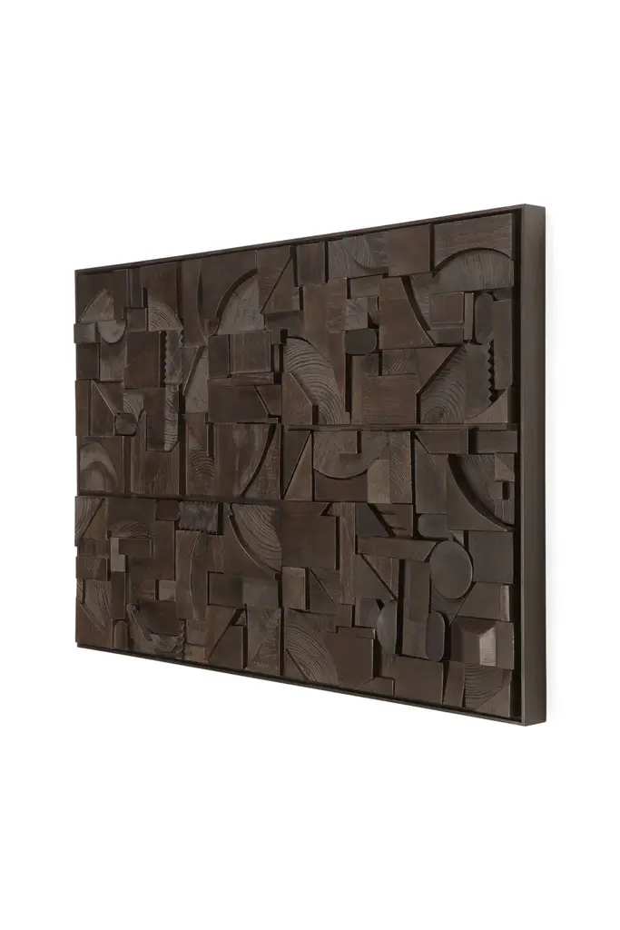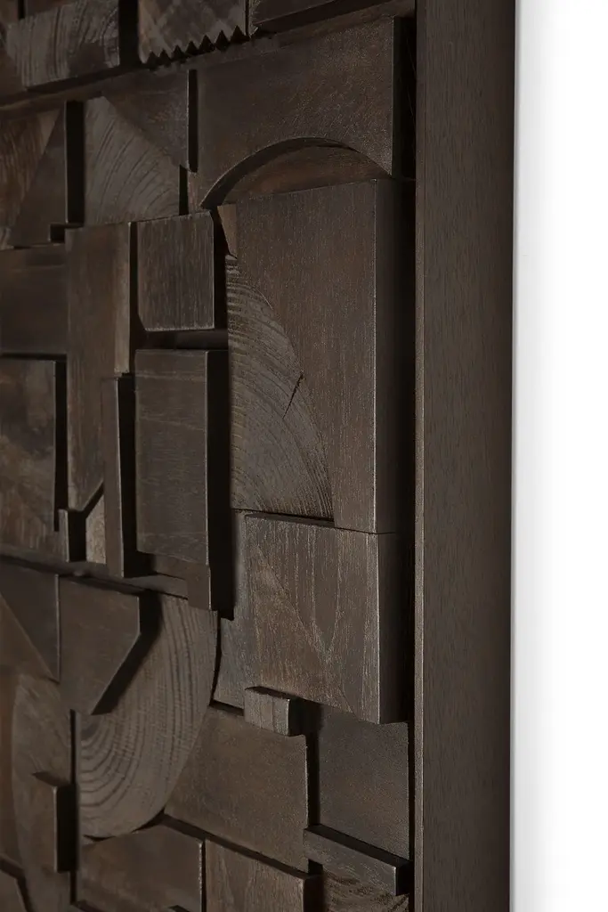 Enhance your interiors effortlessly with the Rectangular Puzzle Wall Art by Ethnicraft. Individually handcrafted, each Bricks wall art stands as a testament to craftsmanship, ensuring that no two creations are exactly alike. Dimension, depth, and intrigue are built within layers of solid recycled wood and offcuts thoughtfully repurposed from production. This blend of eco-conscious sourcing and artistic ingenuity upgrades your interior decor whether you choose to hang it as an individual statement piece or arrange in pairs for bolder aesthetic.
