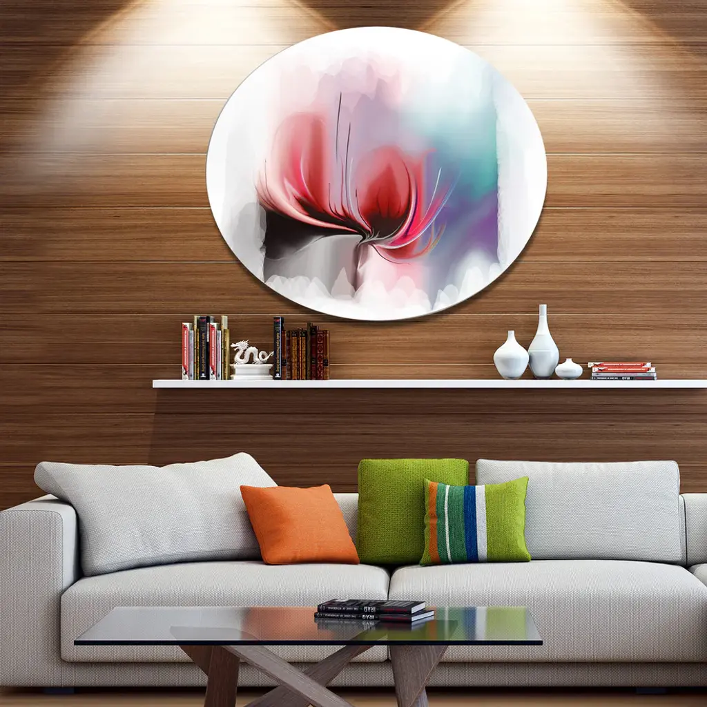 Bring Contemporary Abstraction to your home with this large Circle Metal wall art. This Red Abstract Flower Illustration Metal Artwork makes it the focal point of any room or office. - White Gloss Coating ensures colors are extra vibrant with light reflection.- Aluminum grade Sheet Metal with 1 inch mounting frame on the back giving the illusion that the artwork is floating on the wall..- Mounting Brackets are included along with instructions.- High Quality Digital images are created directly into a glossy aluminum panel producing a stunning and captivating print into the glossy finish of the metal.- Water, Fire and Scratch resistant HD Aluminum panels.- Looks better than any photo paper and guaranteed to last at least 20 years- Easy to clean with a microfiber cloth. Colors are far superior to regular Canvas Art. - Easy to Hang